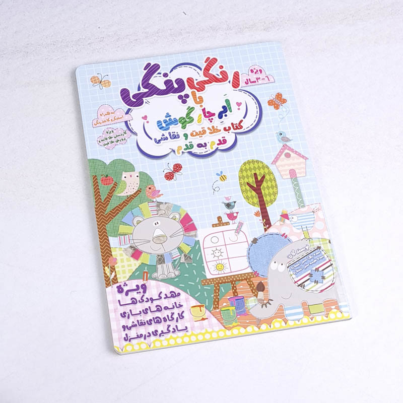 کتاب کار رنگی پنگی با ابرِ چارگوش، کتاب خلاقیت و نقاشی قدم به قدم. ویژه مهدکودک ها، خانه های بازی، کارگاه های نقاشی نقاشی و یادگیری در منزل. به همراه استیکر و کاغذ رنگی، ویژه ی کاردستی خلاقانه و پرورش خلاقیت. مناسب 3 تا 6 سال.