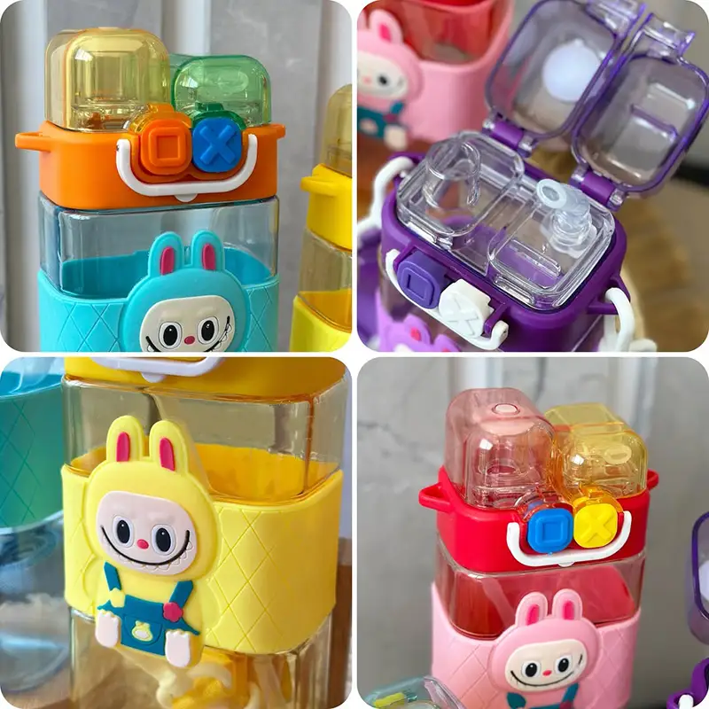 قمقمه نی دار طرح لبوبو وسیله ای بسیار کاربردی و مناسب برای نگهداری نوشیدنی کودکان در مدرسه، کلاس و باشگاه. دارای 2 سری نی دار و بدون نی و 2 محفظه جداگانه برای نگهداری دو نوع نوشیدنی. تازه دسته و بند برای حمل و استفاده آسان هم داره.