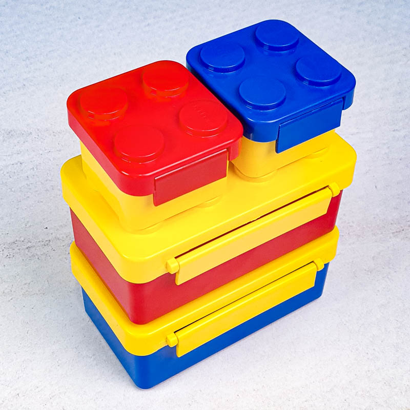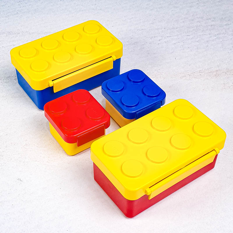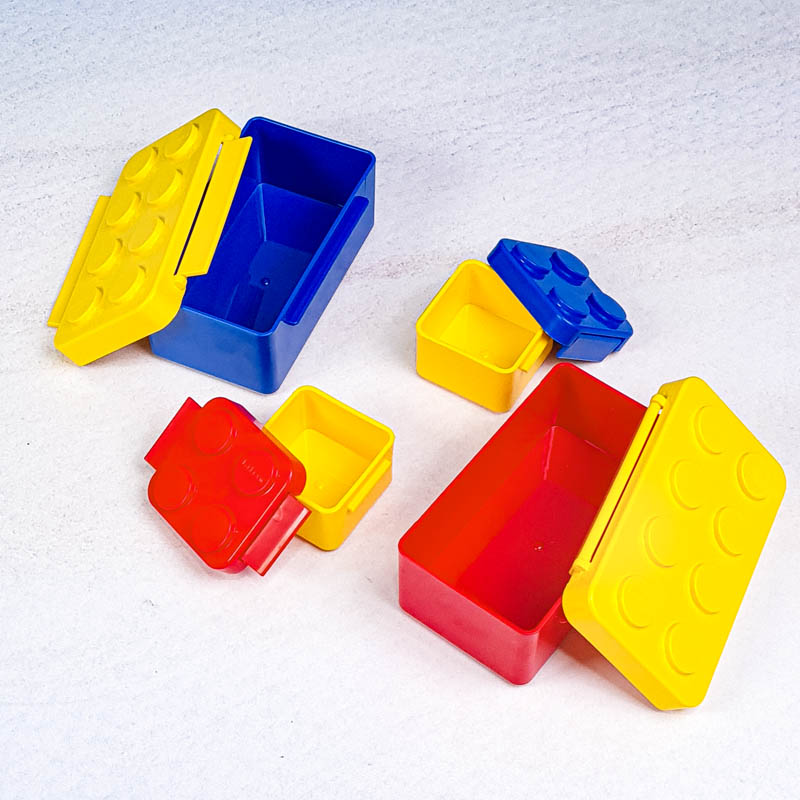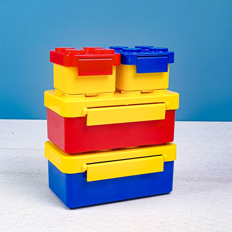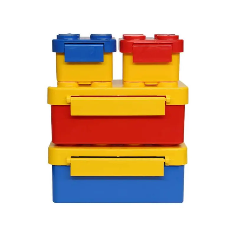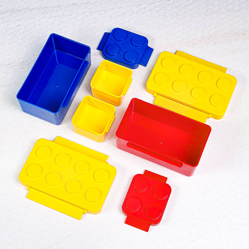 یک انتخاب خوب برای نگهداری غذا و دسر در مهد کودک و مدرسه می باشد. این ظرف غذا از دو سایز بزرگ برای غذا و دو سایز کوچک برای دسر، ماست، سالاد و... تشکیل شده است. همچنین طراحی این ظرف مانند اسباب بازی لگو میباشد و به راحتی روی هم چیده میشوند. ظرف غذا کودک یا لانچ باکس یک کیت غذا خوری در دار است که دارای 4 قسمت برای منظم و جدا نگه داشتن غذای کودک کاملا مناسب است. این ظرف غذا شامل دو ظرف بزرگ با دو ظرف کوچک در دار است که قابلیت قرار دادن اسنک، ماست، دسر و... در ظرف های مجزا را برای کودک فراهم میکند. این ظرف غذای کودک تست گرفته شده و از مواد با کیفیت، غیر سمی(BPA)، ساخته شده اند تا کودکتان در سلامت کامل از آن لذت ببرند. این محصول دارای طراحی بسیار زیبا مانند اسباب بازی لگو است تا فضای کمتری را در کیف کودک اشغال کند و همچنین به دلیل وجود قفل در دو طرف ظرف و واشر سیلیکونی امکان نشت و چکه غذا و خوراکی کودک وجود ندارد و در نتیجه مواد غذایی را از نظر بهداشتی حفظ می کند. رنگبندی زیبا و منتوع و مدل لگویی این ظرف غذا اشتهای کودک را به خوردن خوراکی های سالم تحریک میکند.