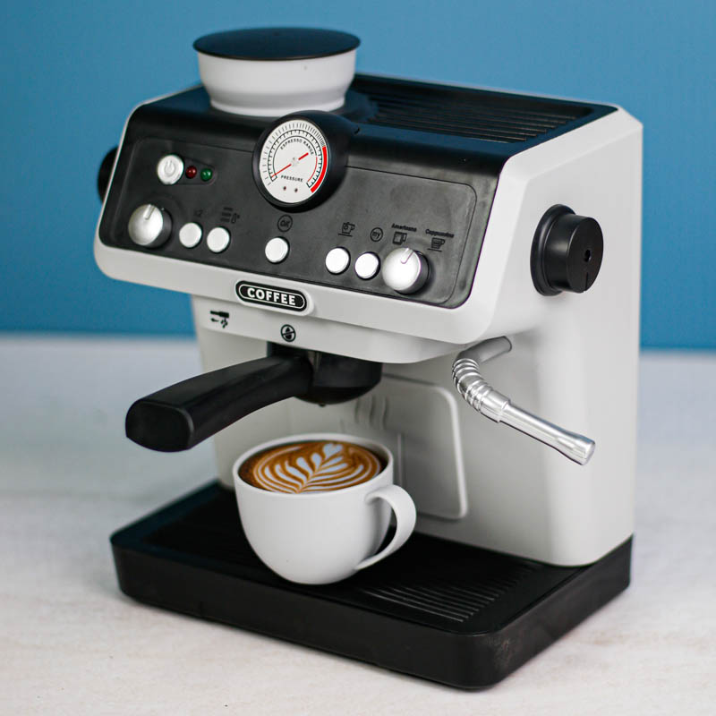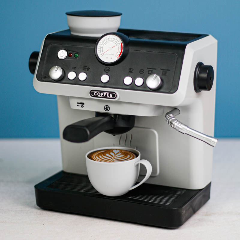 برای شروع یک صبح پر انرژی یا بعد از یک روز خسته کننده فقط یه فنجون قهوه میچسبه! نوشیدنی های گرم و خوشمزه را مانند یک باریستا حرفه ای در خانه تهیه کنید. تو دستگاه قهوه ساز آب بریز و منتظر قهوت باش. این قهوه ساز مشابه یک دستگاه واقعی در سایز کوچک می باشد. دارای صدا و نور بوده که برای کودکان 3 سال به بالا بسیار جذاب و دوست داشتنی خواهد بود. در کنار قهوه ساز را برداشته و داخل آن را آب بریزید، دستگاه عصاره گیر قهوه را به آن وصل کنید و دکمه آن را روشن کنید، نوشیدنی گرم خود را با فشار دادن یک دکمه آماده کنید. این اسباب بازی مناسب کودکان بالای 3 سال است و یک هدیه عالی تولد میباشد.