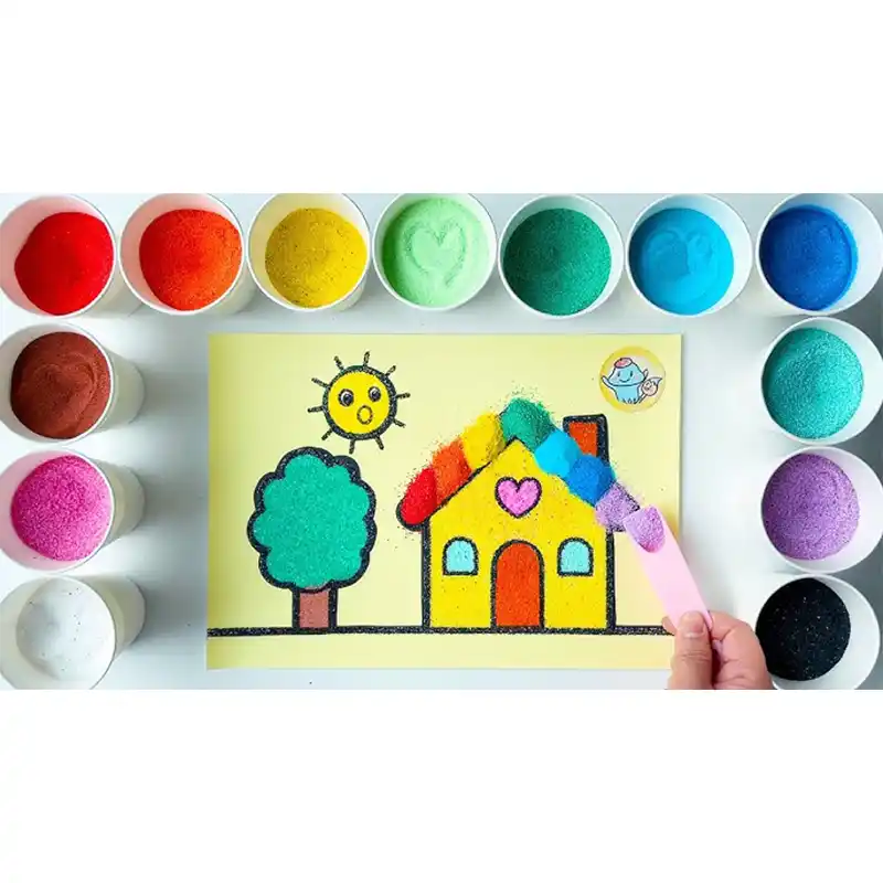 - تولید شده از ماسه طبیعی معدنی، شستهشده و رنگآمیزیشده با رنگهای غیرسمی و بدون بو.