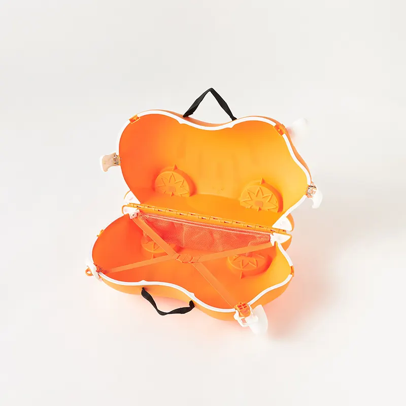 چمدان چرخدار نارنجی اوپس OOPS برای مسافران کوچک 3 تا 6 سال طراحی شده است تا همه وسایل ضروری سفر خود را بستهبندی کنند و در حین سفر مانند بزرگترها کیف و چمدان و لوازم مخصوص خود را داشته باشند. این چمدان کودک 18 لیتر ظرفیت و تحمل وزن 50 کیلوگرم دارد، این چمدان نشیمنگاهی راحت، بستهای قفلشونده امن، لبهای نرم از جنس لاستیک، یک جیب داخلی و بندی برای عروسک دارد. چمدان چرخدار نارنجی اوپس OOPS، یک هدیه ایدهآل برای کودکان کوچک است. بند چندکاره چمدان به والدین اجازه میدهد تا کودکان خسته را بکشند. علاوه بر این، میتوانید چمدان کابین را به راحتی روی شانه خود حمل کنید. چمدانهای مسافرتی سبک و با دوام هستند و به گونه ای طراحی شده است که مانع خستگی کودکان درطول سفر بشود. بدنه چمدان دسته ای از پلاستیک سخت مقاوم در برابر ضربه ساخته شده و دارای ظرفیت 18 لیتر است. این چمدان به عنوان هدیهای برای سفر برای نوزادان یا کودکان خردسال عالی است و برای سالها در طول دوران کودکی قابل استفاده خواهد بود. طراحی چمدان چرخدار نارنجی اوپس OOPS به گونه ای است که بتواند به عنوان کیف دستی استفاده شود.