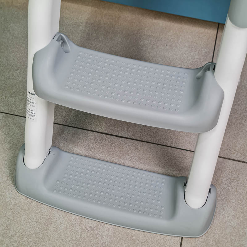 تبدیل توالت فرنگی پله دار چیپولینو Skippy CHIPOLINO محصولی تاشو و کمجا با قابلیت تنظیم پله در دو ارتفاع، مجهز به پايه ضد لغزش و دستگيره كناری برای تسلط و راحتی كودک. در ضمن این تبدیل توالت کودک قابل شستوشو، مناسب برای آموزش و مستقل شدن كودک در توالت رفتن نیز می باشد. این تبدیل توالت مناسب استفاده بر روی همه توالت فرنگی ها می باشد. این محصول از جنس پلاستیک مقاوم و باکیفیت است و تحمل وزن تا 60 کیلوگرم را دارد. از دیگر ویژگیهای خوب این تبدیل های توالت، جلوگیری از تماس پوست کودک با توالت فرنگی است که کودک را از در معرض قرار گرفتن انواع بیماریها و آلودگیها حفظ میکند. با پیچ های کناری در پایه های تبدیل توالت، هنگام نصب می توانید ارتفاع پله آن را تنظیم کنید.