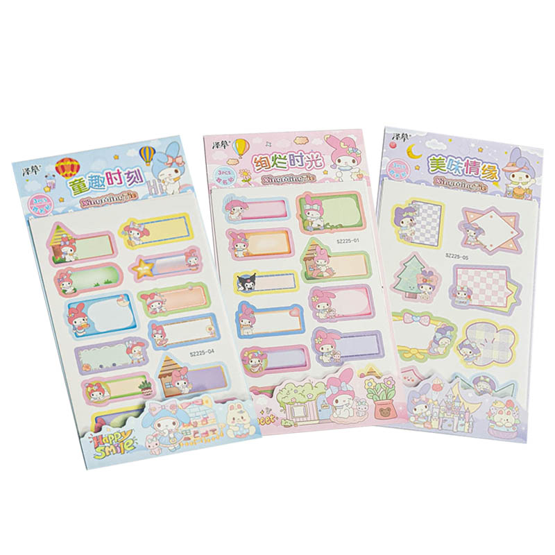 برچسب های فانتزی طرح کرومی یک هدیه دوست داشتنی برای کوچولوهایی که طرفدار گروه سانریو و شخصیت های ملودی و کرومی هستند. در هر بسته بندی این برچسب های فانتزی 3 صفحه برچسب با طرح های متفاوت وجود دارد.