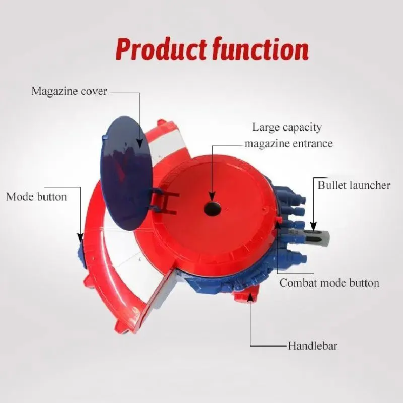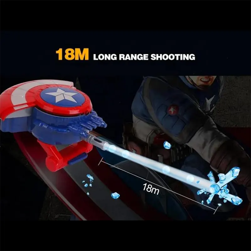قبل از بازی تیرها را به مدت نیم ساعت درون آب قرار داده تا به اندازه کافی برگ شوند. اسباب بازی تفنگ تیر ژله ای قابلیت پرتاب تیر در برد 18 متر را دارد. تیرهای ژله ای را درون مخزن روی تفنگ بریزید و با هر بار شلیک 1 تیر از این تفنگ به صورت خودکار شلیک میشود. به همراه این اسباب بازی پسرانه یک عدد عینک محافظ قرار دارد که از چشمان کودکان محافظت میکند. اسباب بازی تفنگ و سپر کاپیتان آمریکا یک انتخاب ایده آل برای کودکانی است که عاشق بازی های جنگی با اسلحه در داخل خانه، حیاط و طبیعت هستند. در قسمت خارجی این تفنگ اهرمی برای تبدیل تفنگ به سپر محافظ قرار دارد و در سمت دیگر آن دکمه ای برای تبدیل تفنگ به سپر کاپیتان آمریکا قرار دارد. توجه کنید که به سمت صورت شلیک نکنید و برای کودکان زیر 8 سال باید زیر نظر بزرگسالان اسلحه بازی کنند. این بلستر به شما این امکان را می دهد که از فاصله دور یا در فاصله نزدیک به حریفان شلیک کنید. تفنگ اسباب بازی کودک ساخته شده از پلاستیک با درجه کیفی بالا و فاقد مواد سمی است و برای نقش بازی کودکان و بازیهای بیرون از خانه، بازی وانمودی بسیار ایده ال است که مهارتهای حرکتی، تخیل و خلاقیت کودکان را توسعه میدهد.
