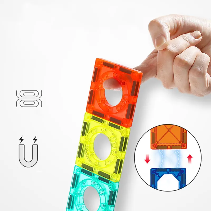 تقویت خلاقیت فرزندان هرگز زود نیست. کودکان می توانند از طریق بازی یاد بگیرند. در ابتدا با حس قوی رنگها و هندسه، از جمله اشکال سه بعدی، اعداد، قطب های مغناطیسی و طراحی معماری آشنا می شوند همچنین بازی با کاشی های مغناطیسی موجب تقویت مهارت حل مسئله و تقویت صبر می شوند.