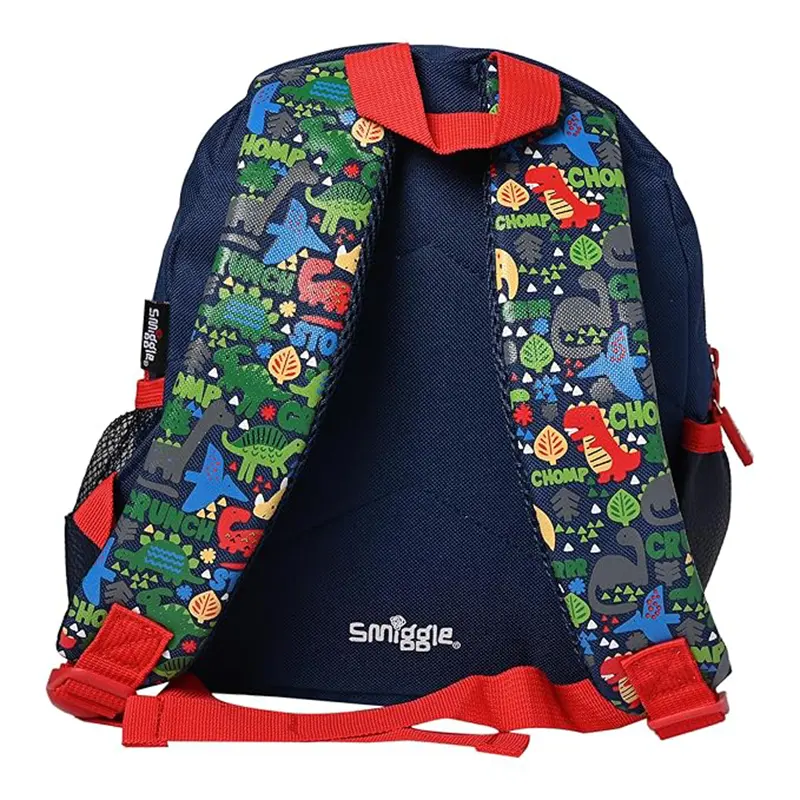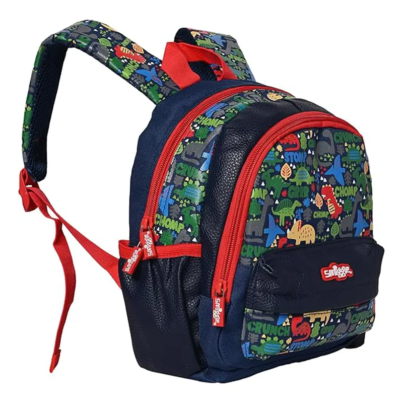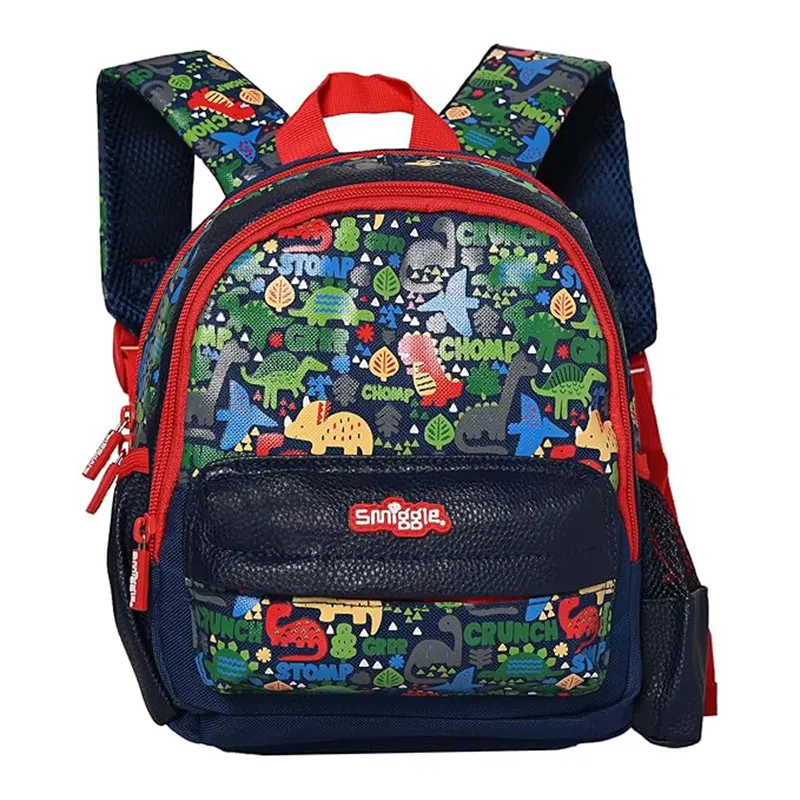 کوله پشتی مهدکودک از برند اسمیگل با طرح دایناسور یک کوله پشتی زیبا و جادار مناسب دوران مهدکودک است. این کوله پشتی با طرح های دایناسورهای کوچک و بامزه، محبوب پسر بچه های گروه سنی 1 تا 5 سال است. این کوله پشتی دارای یک دستگیره، بند سر شانه اسفنجی نرم و مشبک با قابلیت تنظیم ارتفاع، 1 زیپ بزرگ و کاربردی، 1 زیپ متوسط و 1 زیپ کوچکتر اما جادار است؛ همچنین دارای 2 جای قمقمه توری و از جنس کوله پشتی در دو طرف است.