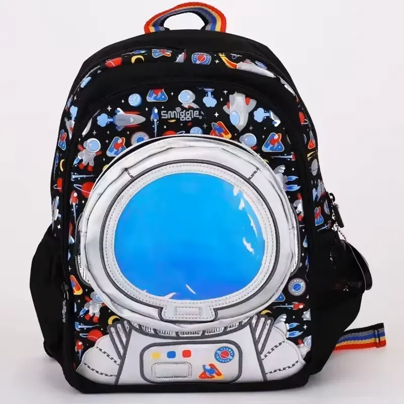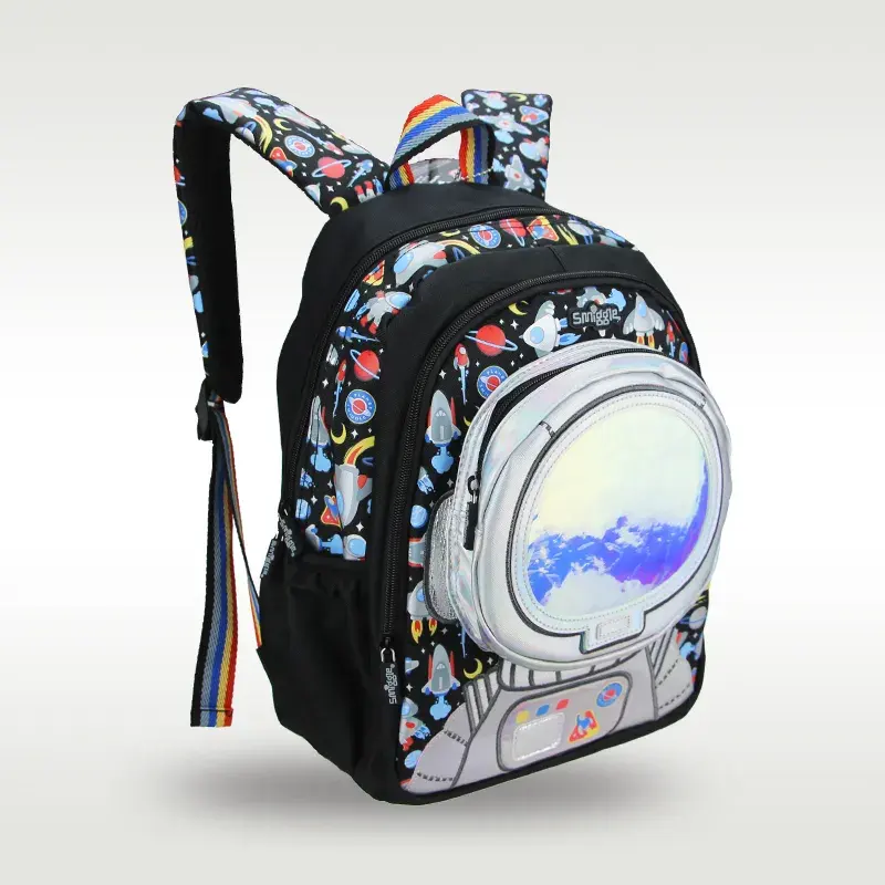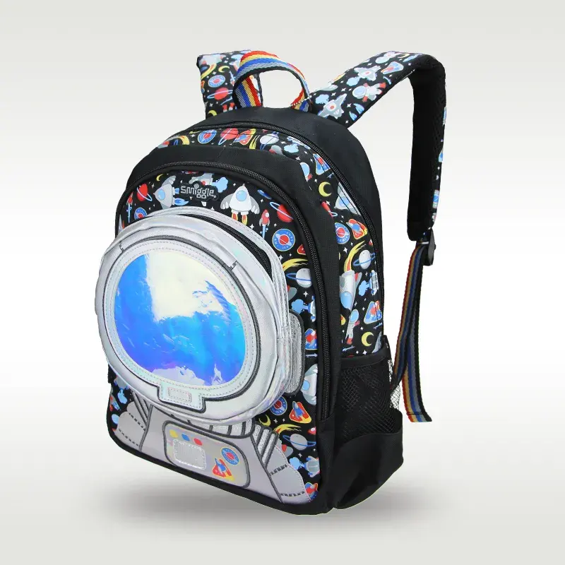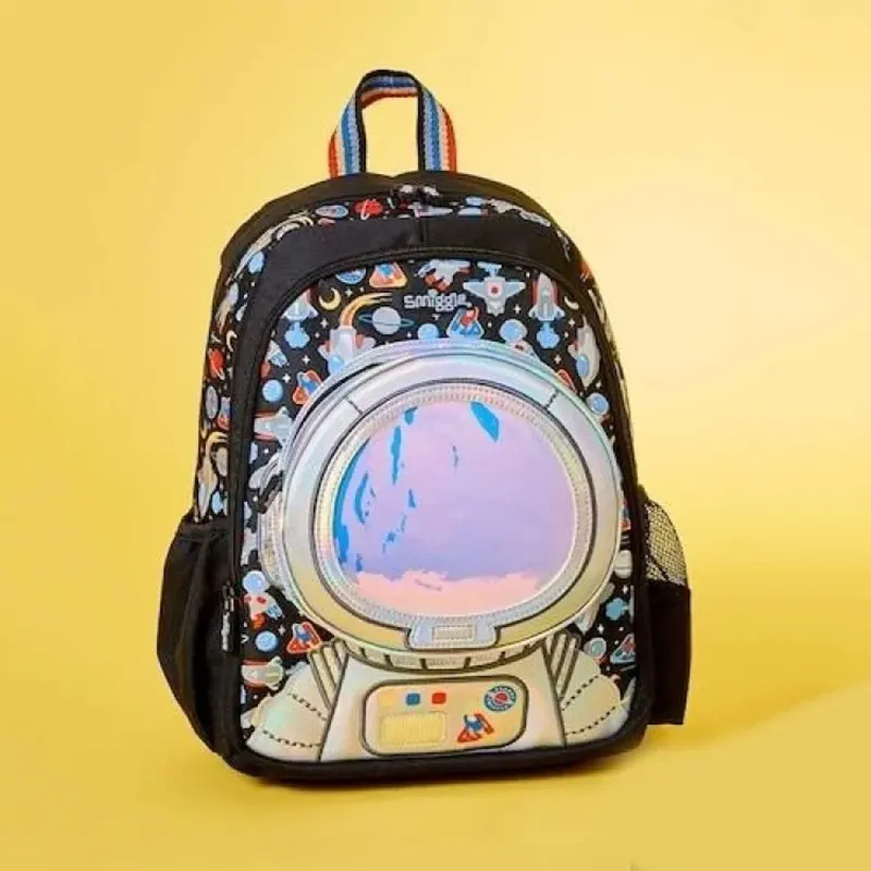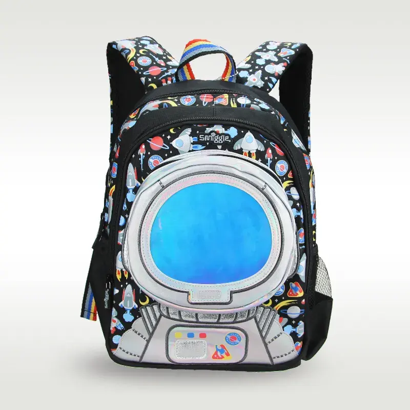 کوله پشتی کودک از برند اسمیگل طرح فضانورد، بسيار سبک و جادار با طرح فضانورد با کلاه هلوگرامی است. این کوله پشتی کودک مناسب گروه سنی 5 تا 9 سال (مهد کودک و دبستان)، دارای دستگيره حمل و بند نرم با قابليت تنظيم اندازه است.