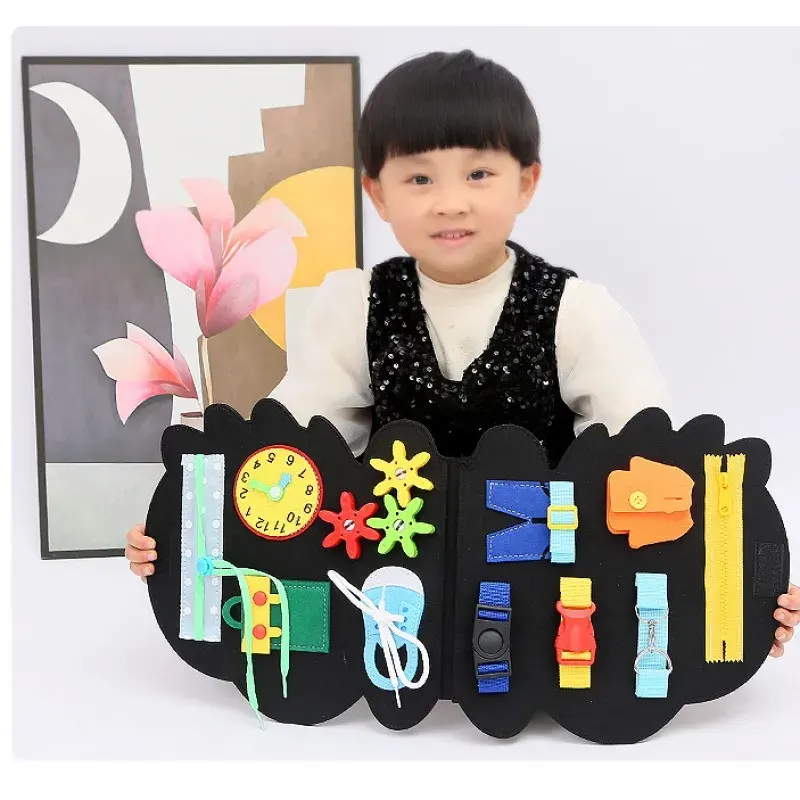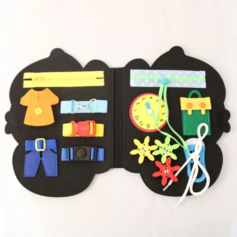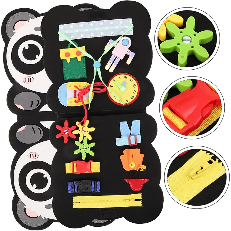 بازی با کتاب، به تقویت مهارت های حسی، یادگیری، مهارت های حرکتی ظریف کمک می کند. این کتاب مونته سوری فوق العاده برای آموزش و تقویت مهارت های حرکتی ظریف کودک می باشد. این کتاب فعالیت مهارت های روزمره را از طریق بستن قفل، سگگ، بند کفش، زیپ و دکمه به کودکان یاد می دهد تا در واقعیت آماده ی انجام آن باشند.