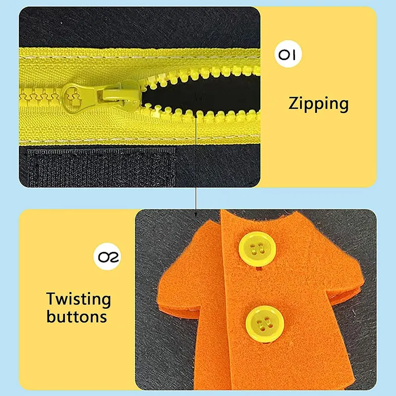 | یادگیری مهارت های روزمره از طریق بستن قفل، سگگ، بند کفش، زیپ و دکمه | |