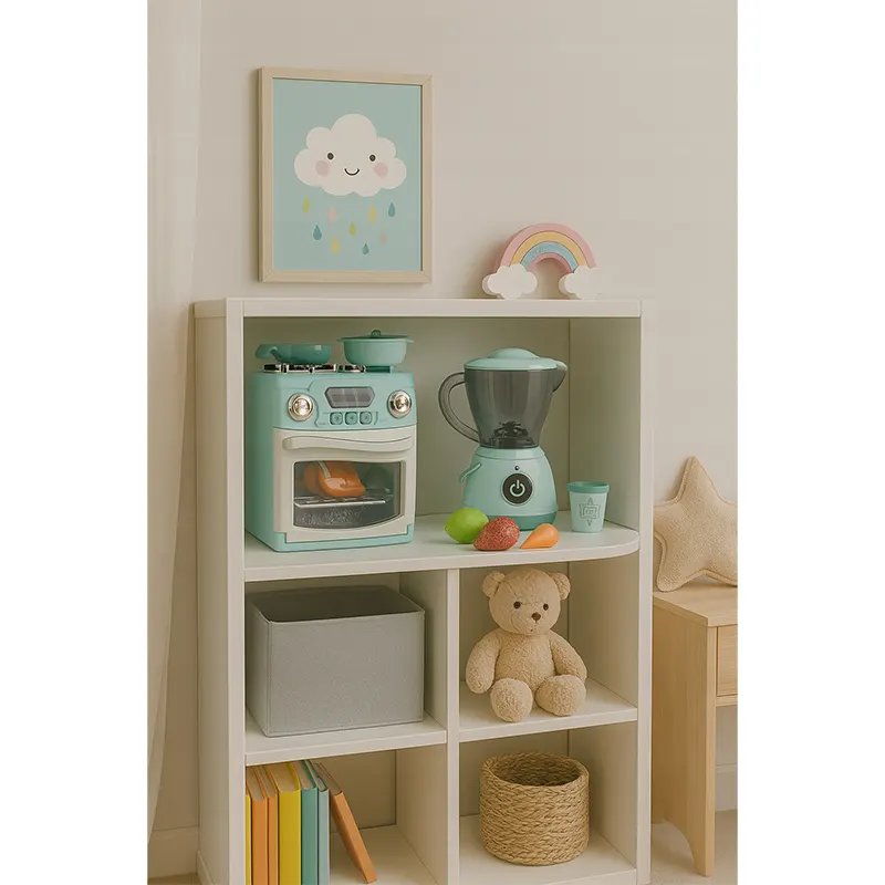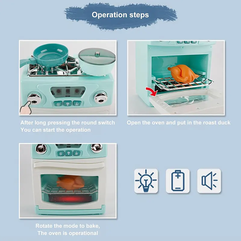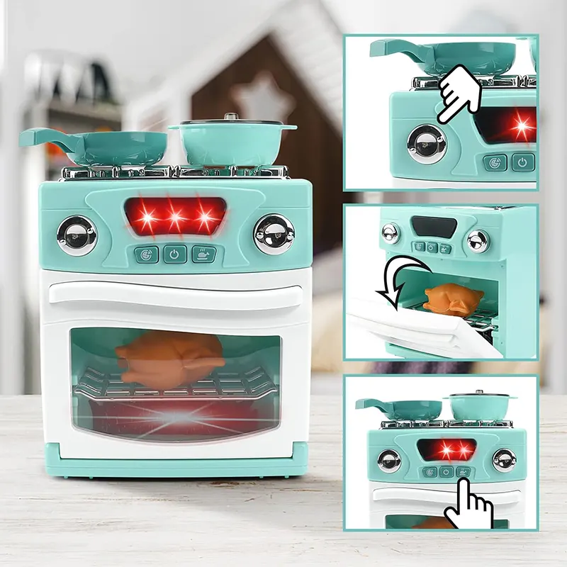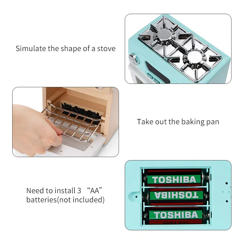 قطعات این اسباب بازی اجاق گاز شامل: اجاق گاز، ماهیتابه، قابلمه در دار، مرغ بریون می باشد.
