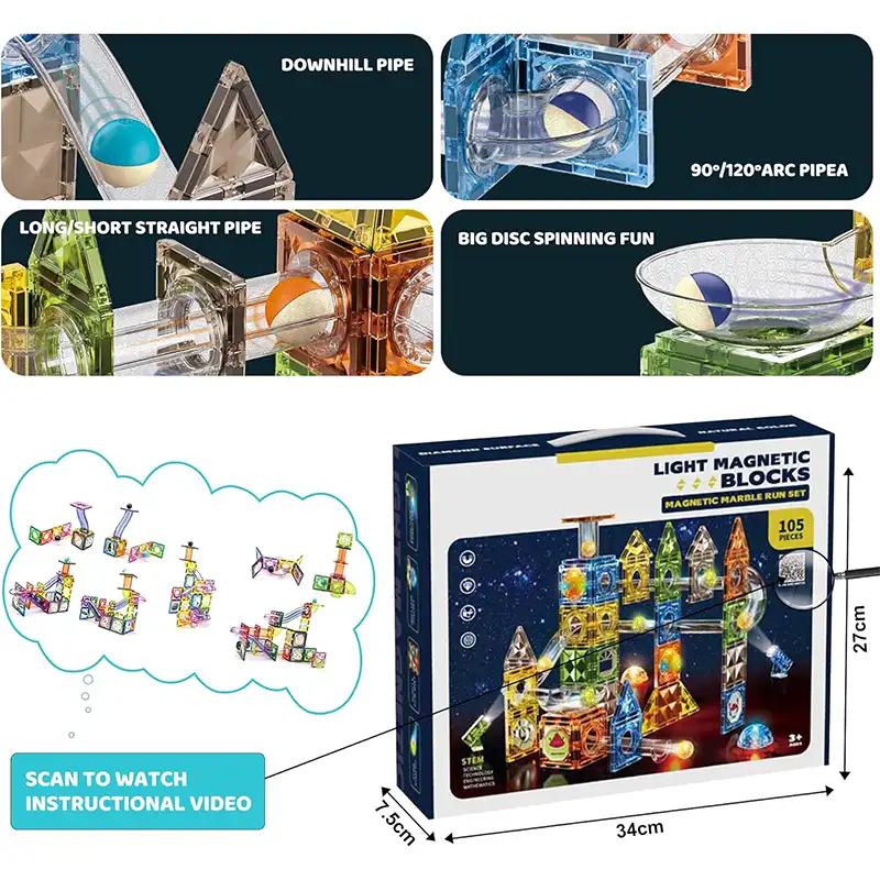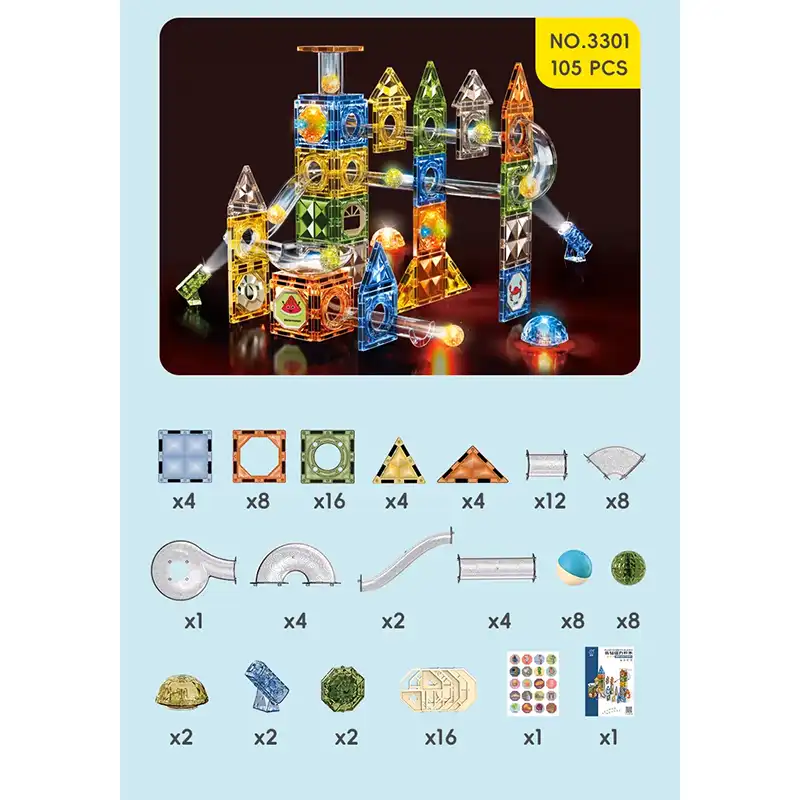 اسباب بازی کاشی های مغناطیسی چراغدار 105 تکه