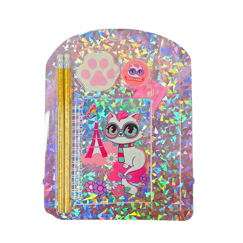 | اقلام همراه | دفترچه، خط کش، مداد، پاک کن، مداد تراش |
