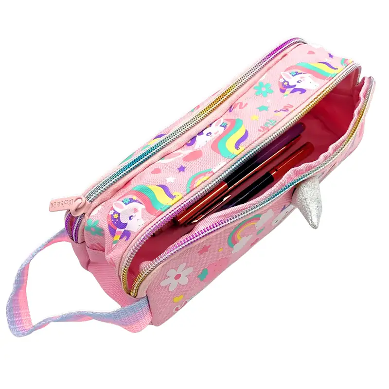 جامدادی برند وست یک لوازم تحریر کودک زیبا و محبوب برای کودکان می باشد. این جامدادی با طرح یونیکورن برجسته دارای دو زیپ بزرگ و جادار برای قرار دادن خودکار و سایر لوازم کودک محبوب کودکان دارد. زیپ این جامدادی بسیار نرم و روان و جنس آن ضد آب است.