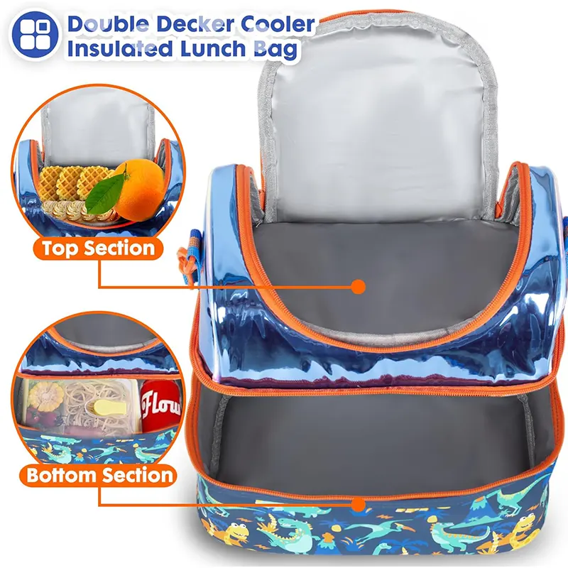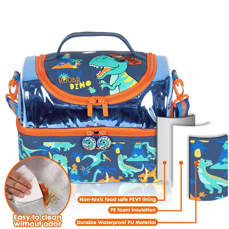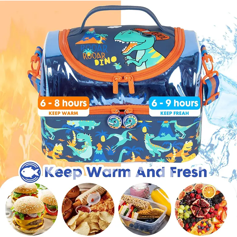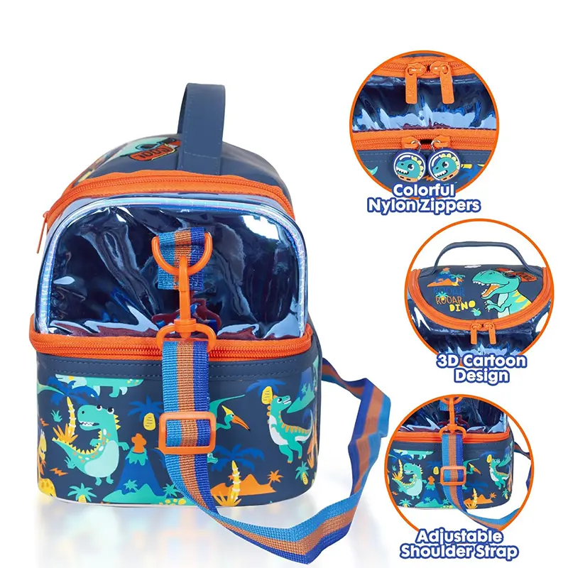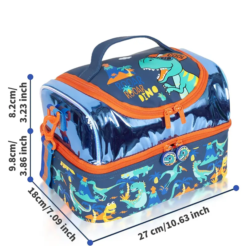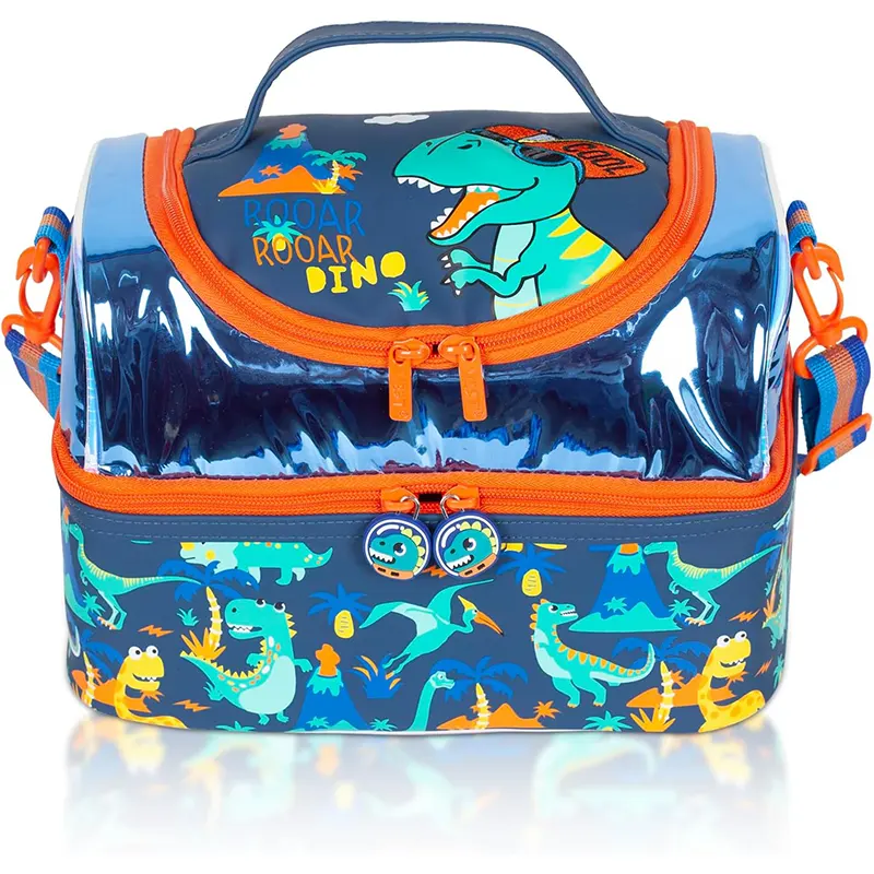 لانچ بگ یا کیف غذا برند وست VEST طرح دایناسور، یک مدل لانچ باکس بسيار سبک و محکم و جادار است که دارای دو زیپ بزرگ و روان است. این کیف غذای کودک از برند محبوب و پر طرفدار وست مناسب گروه سنی 2 تا 13 سال (مهد کودک، دبستان و متوسطه اول) است. این محصول دارای دستگيره حمل و بند دوشی است. این لانچ بگ دارای طرح دایناسور است که برای کودکان علاقمند دنیای ژوراسیک مناسب است. این کیف غذای کودک با طراحی زیبا، جنس مقاوم و دوختی مناسب و زیپ های با کیفیت یک انتخاب عالی برای بچه هاست تا بتونن توی اون ظرف غذا و خوراکیاشون رو قرار بدن. این کیف مناسب کودکان بالای 2 ساله که می تونن همه جا با خودشون ببرن و با کوله پشتی، جامدادی با همین طرح یک ست زیبا می شود. این ظرف غذای کودک همچنین قابلیت تازه و گرم نگه داشتن مواد غذایی را نیز دارد و ایده آل برای بردن به محیط بیرون و مهدکودک و مدرسه می باشد.