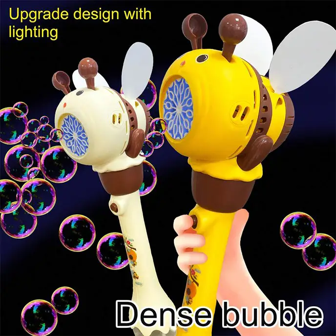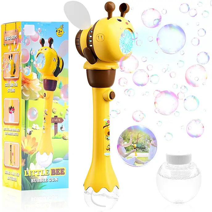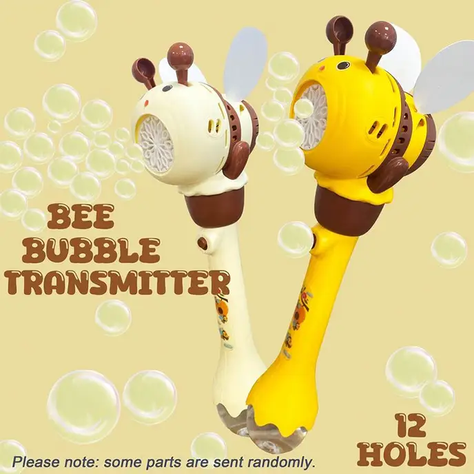 اسباب بازی حباب ساز مدل زنبور که 12 خروجی حباب داره، کلی حباب رنگارنگ برای خودتون بسازید. کافیه مایع حباب سازی که در بسته بندی موجوده را به دستگاه حباب ساز متصل کنید حالا دکمه روی آن را فشار بدید و حباب های رنگی زیبا بسازید و ساعتها سرگرم بازی و تفریح باشید. این اسباب بازی مناسب کودکان 3 سال به بالا است. تفنگ حباب ساز اسباب بازی با کمک 4 عدد باتری قلمی کار میکنه. این اسباب بازی حباب ساز از جنس پلاستیک بادوام ABS سازگار با محیط زیست، فاقد مواد شیمیایی و غیر سمی ساخته شده است.