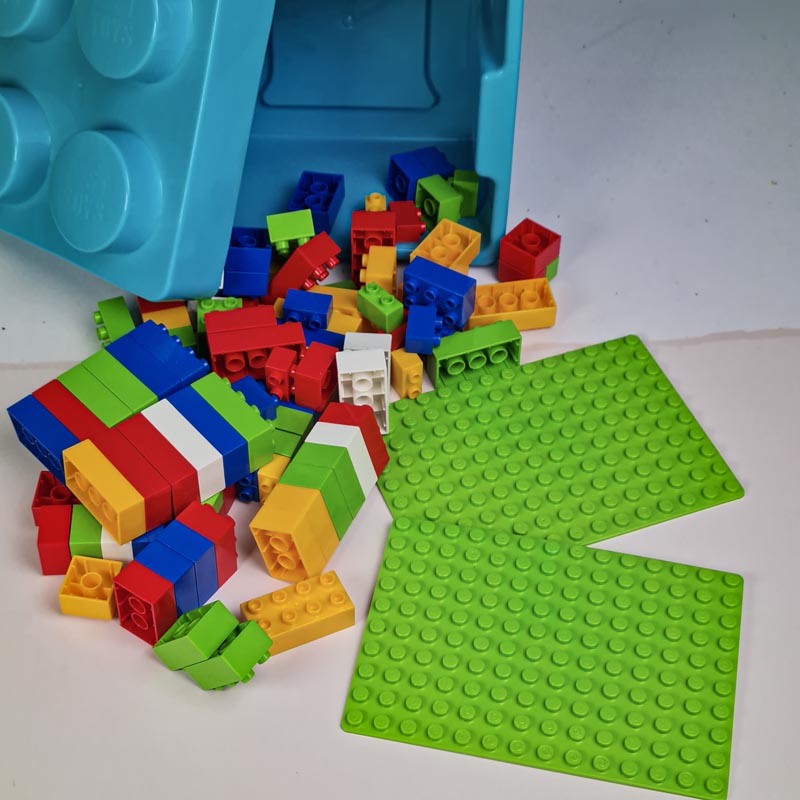 اسباب بازی لگو به همراه باکس لگو شامل 104 تکه لگو دوپلو، 2 عدد صفحه لگو 22.5*16 درون باکس لگویی به ابعاد طول 24 عرض 24 ارتفاع 20 سانتیمتر است. این باکس لگوها باعث می شوند علاوه بر سرگرمی نظم اتاق و فضای مهدکودک به خوبی رعایت شود. این اسباب بازی برای نگهداری قطعات لگو اسباب بازی مناسب است و قابل استفاده در مهد کودک ها و منازل می باشد. باکس اسباب بازی لگو به کودک برای داشتن اتاق تمیز و مرتب کمک میکند و باعث میشود قطعات لگو گم نشود. این مجموعه اسباب بازی از جنس پلاستیک با کیفیت است و برای قرار دادن لگوها و اسباب بازی بچه ها در خانه و مهدکودک ها بسیار مناسب و کاربردی است. این باکس 15 سانتیمتر عمق دارد و دارای 104 تکه لگو است.
