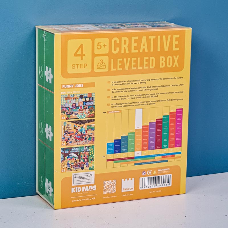 پازل کودک 165 تکه مدل مشاغل KID FANS FUNNY JOBS یک پازل 3 قسمتی با 3 طرح مختلف از مشاغل مختلف است که هر کدام از این پازل ها دارای تعداد مختلفی می باشد و این پازل ساختنی کودک بر اساس تعداد قطعات و درجه سختی برای کودکان 5 سال به بالا یک کادو تولد عالی است.