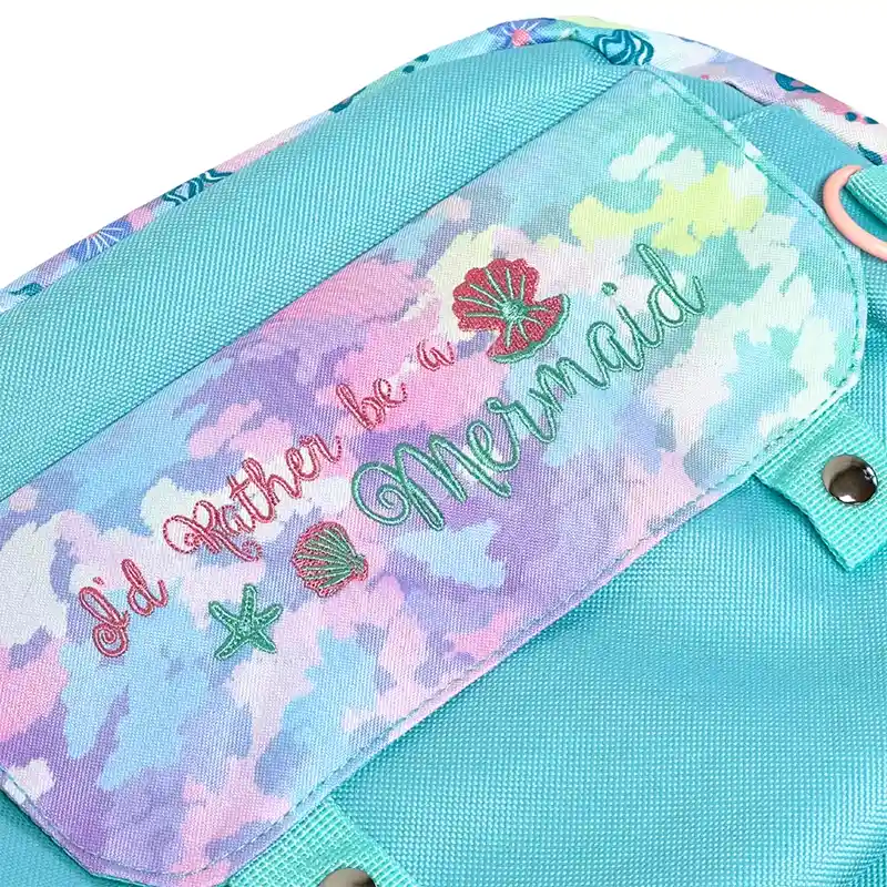 کوله پشتی کودک از برند وست با طرح پری دریایی یک کوله پشتی زیبا و جادار مناسب دوران ابتدایی کودک است. این کوله پشتی دارای بند دوشی قابل تنظیم ارتفاع برای کودکان است، مناسب گروه سنی 7 تا 10 سال است. این کوله پشتی دارای یک دستگیره، بند سر شانه اسفنجی نرم و مشبک با قابلیت تنظیم ارتفاع، یک زیپ بزرگ و کاربردی، یک زیپ کوچکتر و فانتزی، یک جیب دکمه ای جادار است؛ همچنین دارای 2 جای قمقمه در دو طرف است.