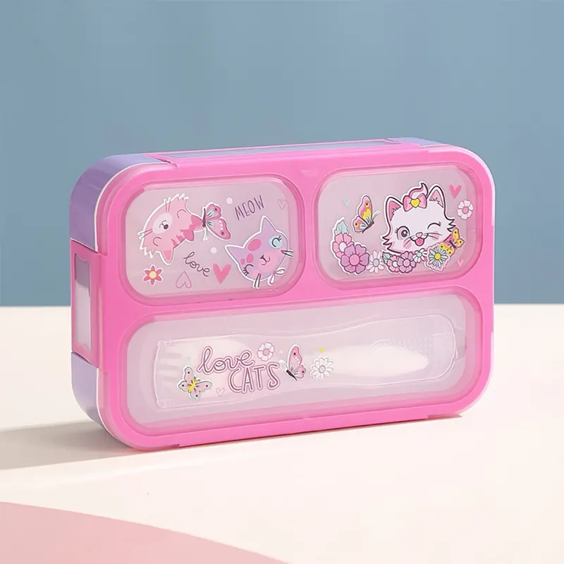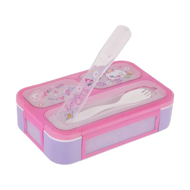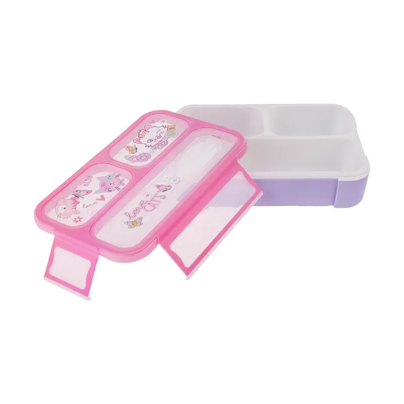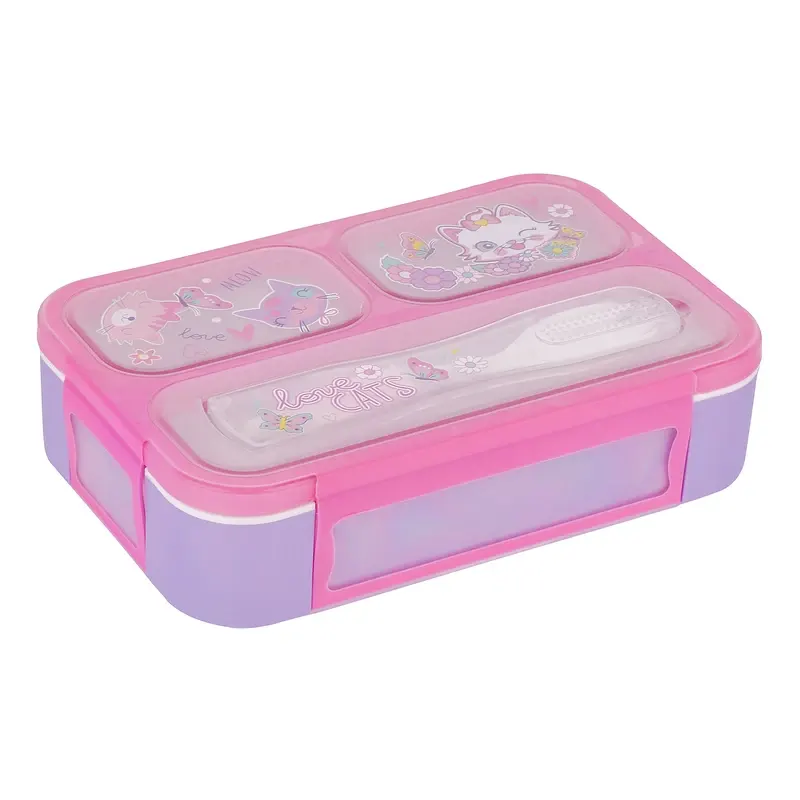 لانچ باکس 3 قسمتی وست VEST طرح گربه ایده آل برای قرار دادن و نگهداری انواع خوراکی ها و غذاها. با این لانچ باکس 3 قسمته می توانید هر یک از خوراکی ها را در یک قسمت قرار دهید و وعده غذایی خود را کامل کنید. این لانچ باکس با داشتن 3 قسمت مجزا پلاستیکی امکان قاطی شدن مواد غذایی را نمیدهد و همچنین دارای دیچه ای برای قرار گرفتن قاشق می باشد همچنین بدنه این لانچ یاکس یا ظرف غذ از پلاستیک PP ( پلی پروپیلن ) و قابل استفاده درون ماکرویو می باشد.