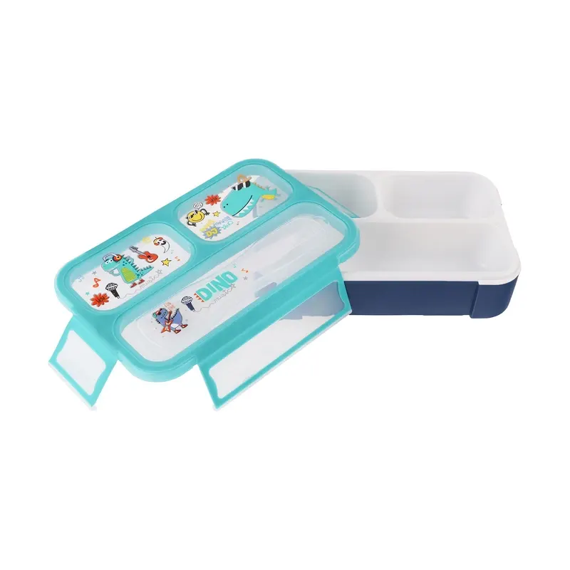 لانچ باکس 3 قسمتی وست VEST طرح دایناسور ایده آل برای قرار دادن و نگهداری انواع خوراکی ها و غذاها. با این لانچ باکس 3 قسمته می توانید هر یک از خوراکی ها را در یک قسمت قرار دهید و وعده غذایی خود را کامل کنید. این لانچ باکس با داشتن 3 قسمت مجزا پلاستیکی امکان قاطی شدن مواد غذایی را نمیدهد و همچنین دارای دیچه ای برای قرار گرفتن قاشق می باشد همچنین بدنه این لانچ یاکس یا ظرف غذ از پلاستیک PP ( پلی پروپیلن ) و قابل استفاده درون ماکرویو می باشد.