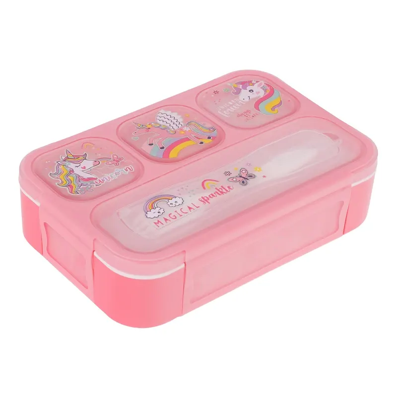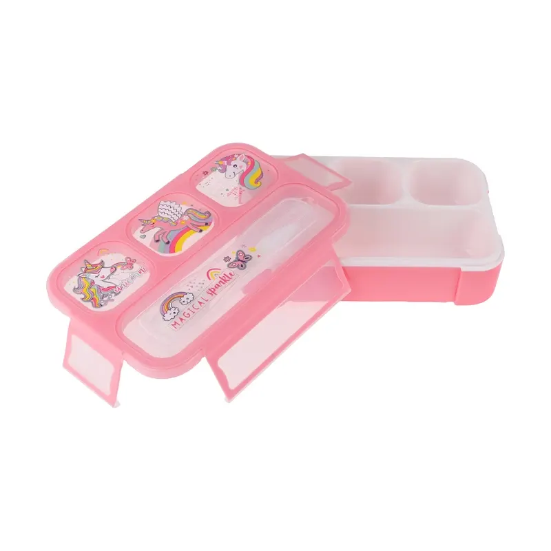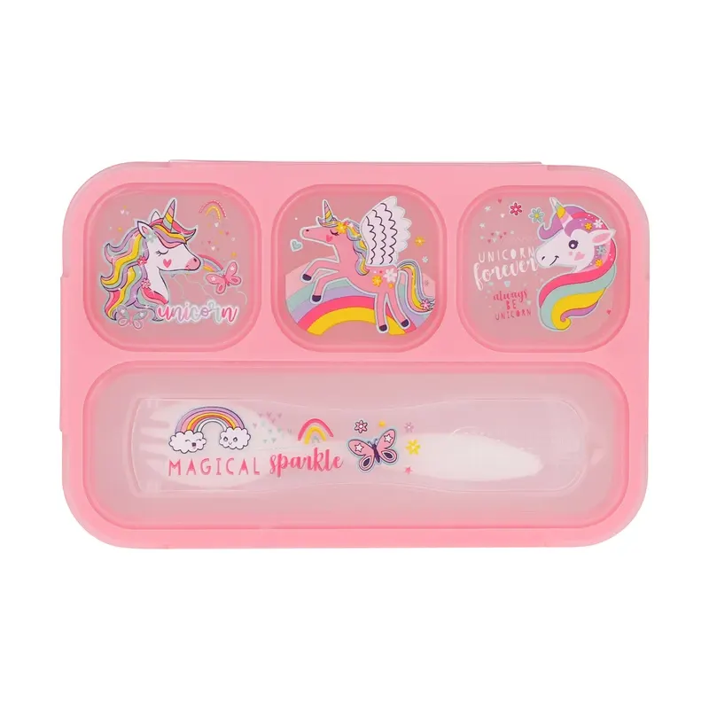 لانچ باکس 4 قسمتی وست VEST طرح یونیکورن ایده آل برای قرار دادن و نگهداری انواع خوراکی ها و غذاها. با این لانچ باکس 4 قسمته هر یک از خوراکی ها را می توانید در یک قسمت قرار دهید و وعده غذایی خود را کامل کنید.