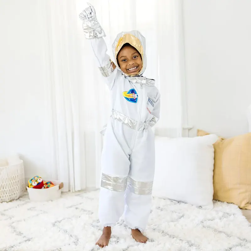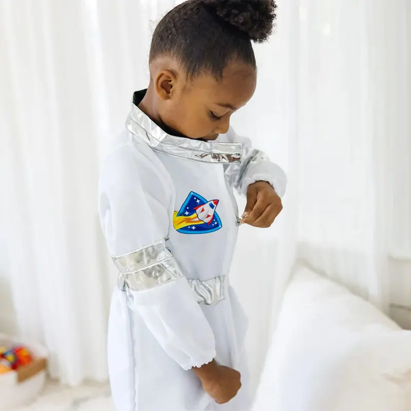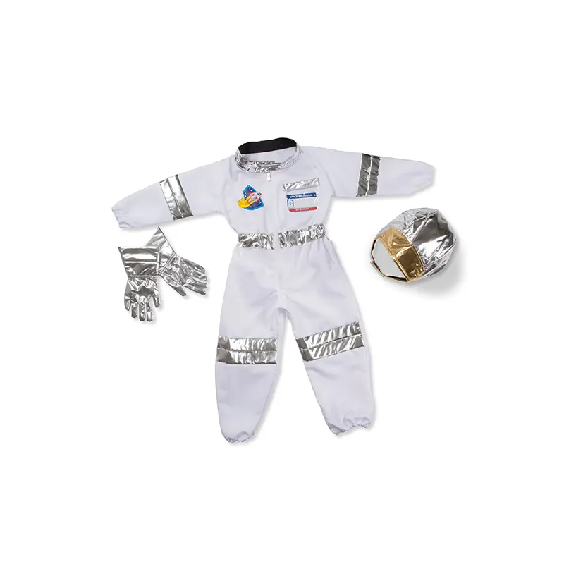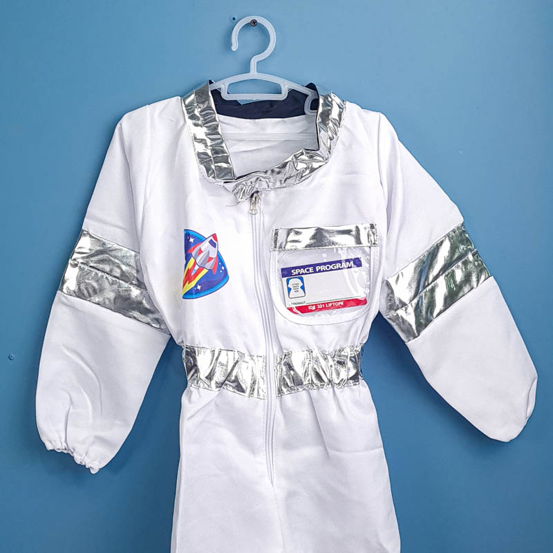 لباس مشاغل کودک مدل فضانورد یک ست شامل روپوش فضانورد یکسره زیپدار و لوازمی مانند دستکش و کلاه فضانورد نقره ای است و برای نقش بازی کودک بسیار سرگرم کننده است. کودک با پوشیدن انواع لباس مشاغل کودک در دنیای نقش بازی غرق می شود و از این طریق بسیاری از مهارت های زندگی را تمرین میکند. این لباس مشاغل کودک برای نقش بازی کودکان بسیار ایده ال است و بازی با آن موجب افزایش خلاقیت کودکان و آشنایی آنها با مشاغل مختلف می شود. این لباس مشاغل برای مهدکودک ها، خانه های مشاغل کودک و خانه بازی ها نیز فوق العاده است.