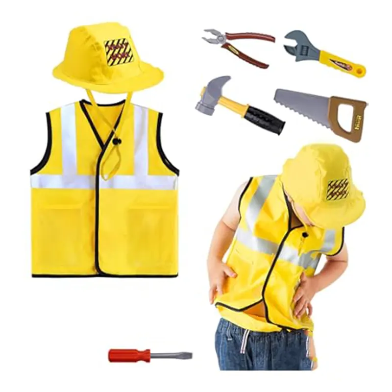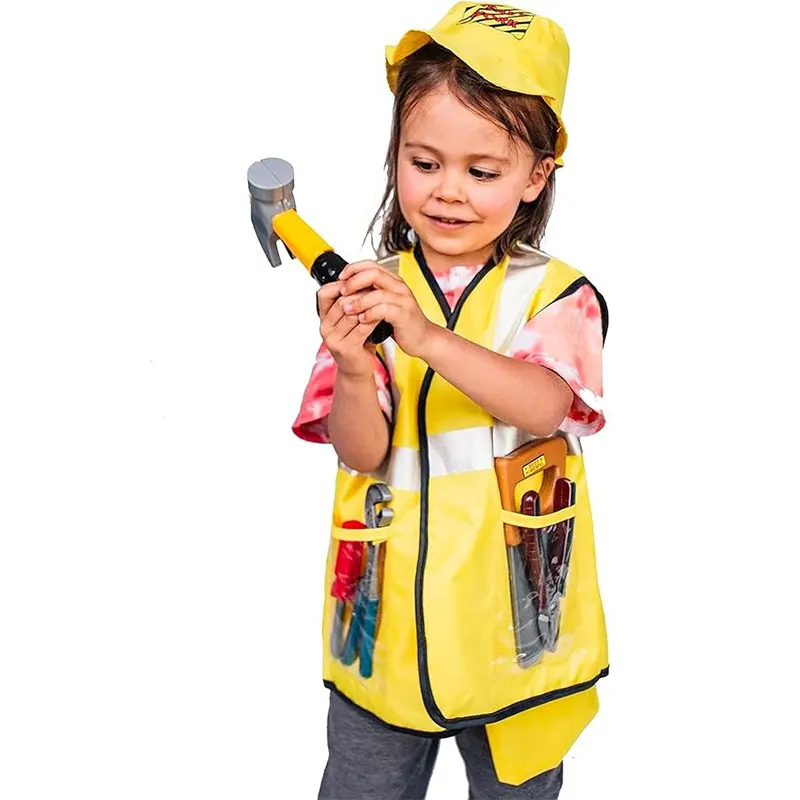 لباس مشاغل کودک مدل نجار با لوازم یک ست شامل جلیقه و لوازمی مانند کلاه، کیف کمری، چکش، پیچ گوشتی، آچار کلاغی، انبر دست، اره است و برای نقش بازی کودک بسیار سرگرم کننده است. کودک با پوشیدن انواع لباس مشاغل کودک در دنیای نقش بازی غرق می شود و از این طریق بسیاری از مهارت های زندگی را تمرین میکند. این لباس مشاغل کودک برای نقش بازی کودکان بسیار ایده ال است و بازی با آن موجب افزایش خلاقیت کودکان و آشنایی آنها با مشاغل مختلف می شود. این لباس مشاغل برای مهدکودک ها، خانه های مشاغل کودک و خانه بازی ها نیز فوق العاده است.