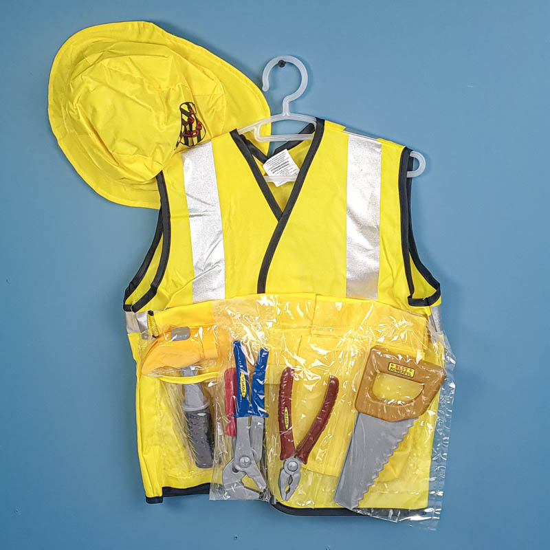 لباس مشاغل کودک مدل نجار با لوازم یک ست شامل جلیقه و لوازمی مانند کلاه، کیف کمری، چکش، پیچ گوشتی و.. است. این لباس مشاغل برای مهدکودک ها، خانه های مشاغل کودک و خانه بازی ها نیز فوق العاده است. موجب افزایش خلاقیت کودکان و آشنایی آنها با مشاغل مختلف میشود.