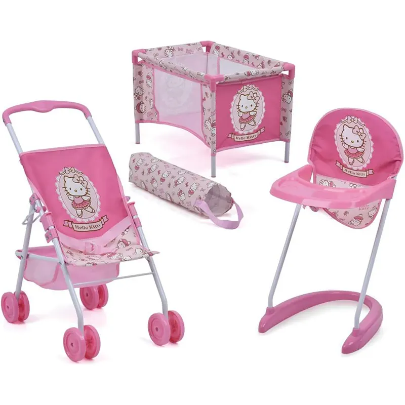 ست کالسکه عروسک 3 در 1 هلو کیتی Hello Kitty، مخصوص عروسک، شامل کالسکه، صندلی غذاخوری، پارک بازی است