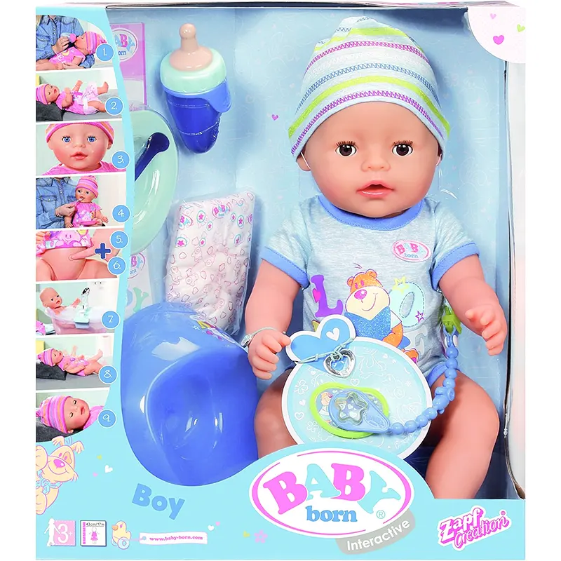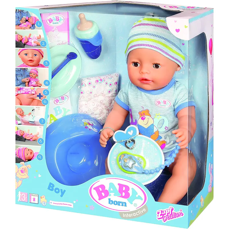 مشخصات عروسک دخترانه جیشی BABY BORN با لوازم پسر با لباس آبی
