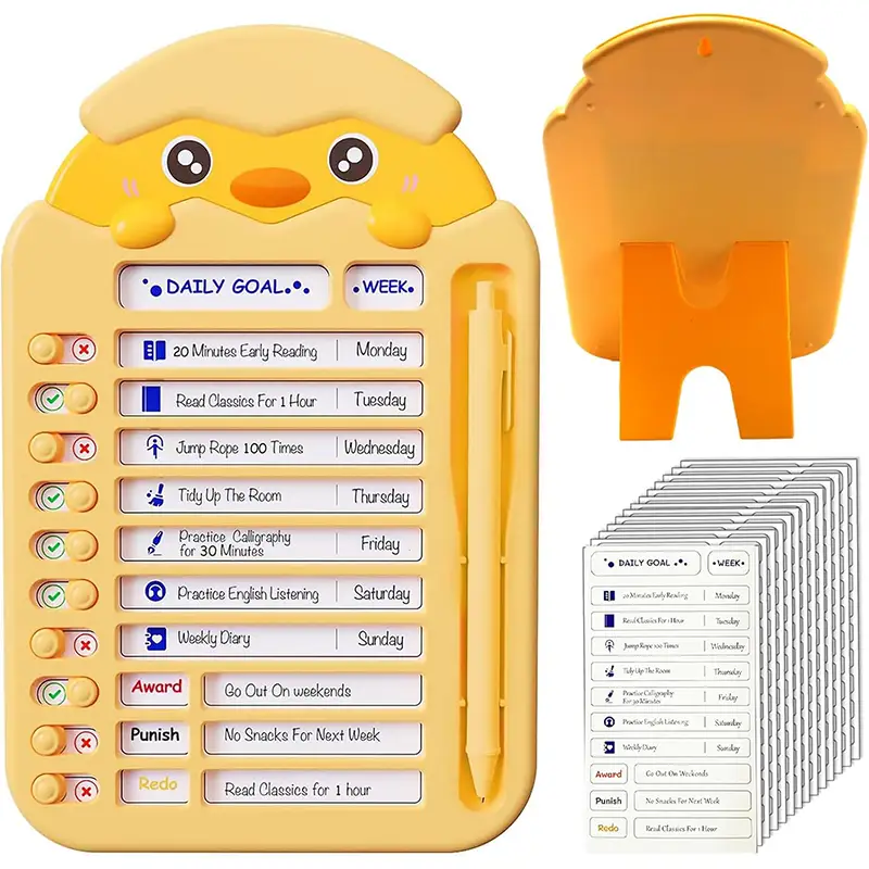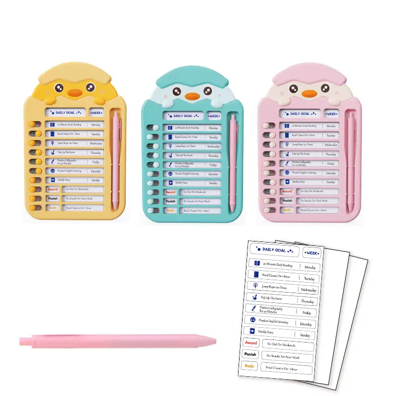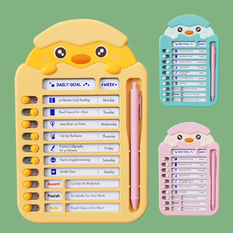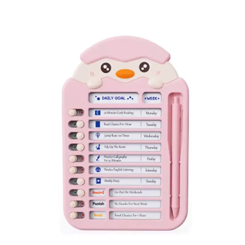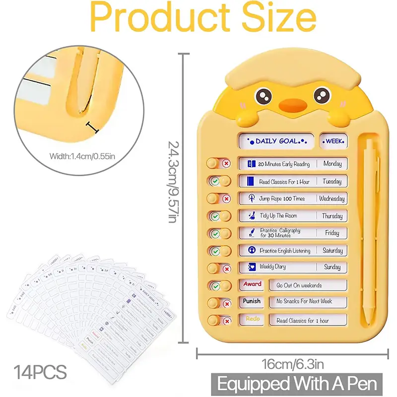 ببا پلنر برنامه روزانه طرح جوجه از این به بعد برنامه و اهدافت رو روی این تخته بنویس و بذار جلوی چشمت باشه! این تخته پلنر رنگی با رنگ های پاستلی جذاب خود کودکان و بزرگسالان رو مجذوب خود می کند. این پلنر دارای 14 کاغذ دو رو برای نوشتن یادداشت ها و برنامه های هفتگی. صفحه ی سفید آن ایده آل برای یادداشت های رومزه و یادآوری هاست و دارای دکمه هایی برای انجام شده و عدم انجام شدن آن است. یک محصول کاربردی برای کودکان بالای 3 سال و نوجوانان و بزرگسالان.