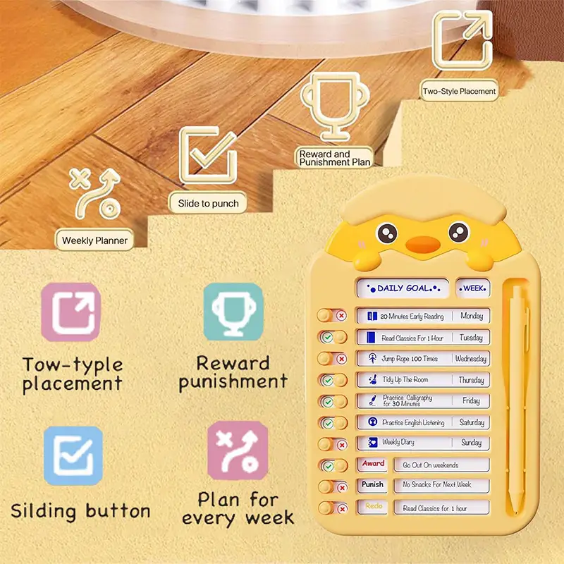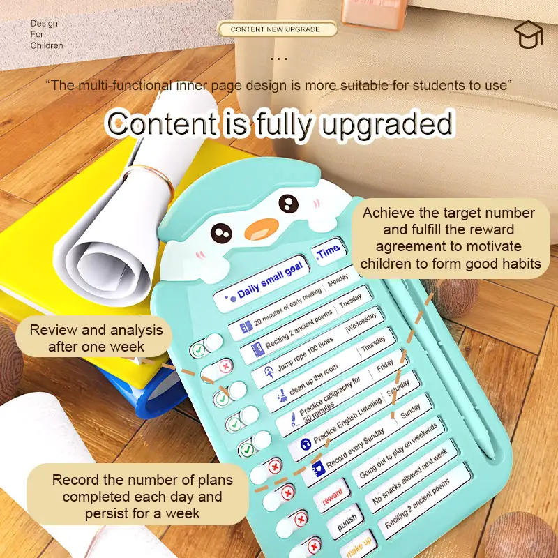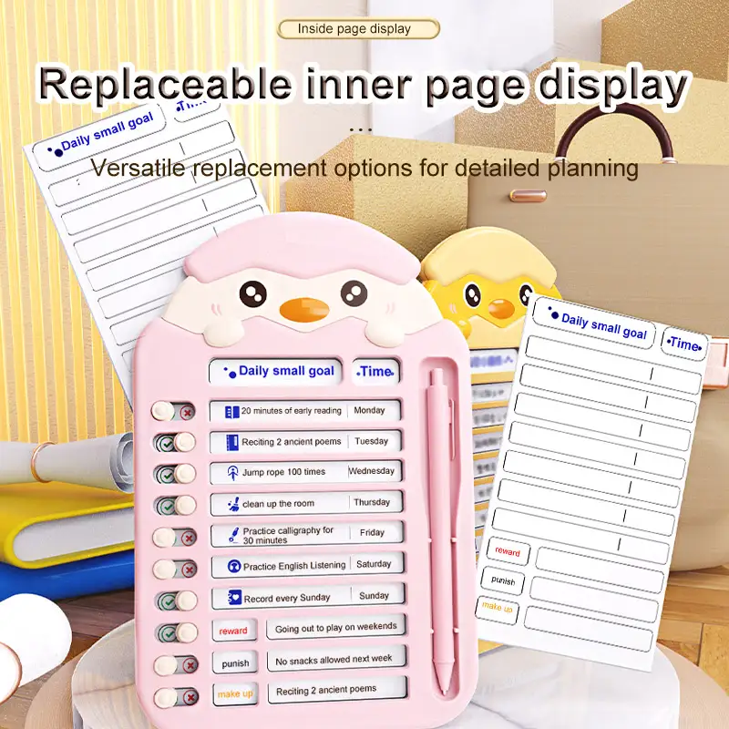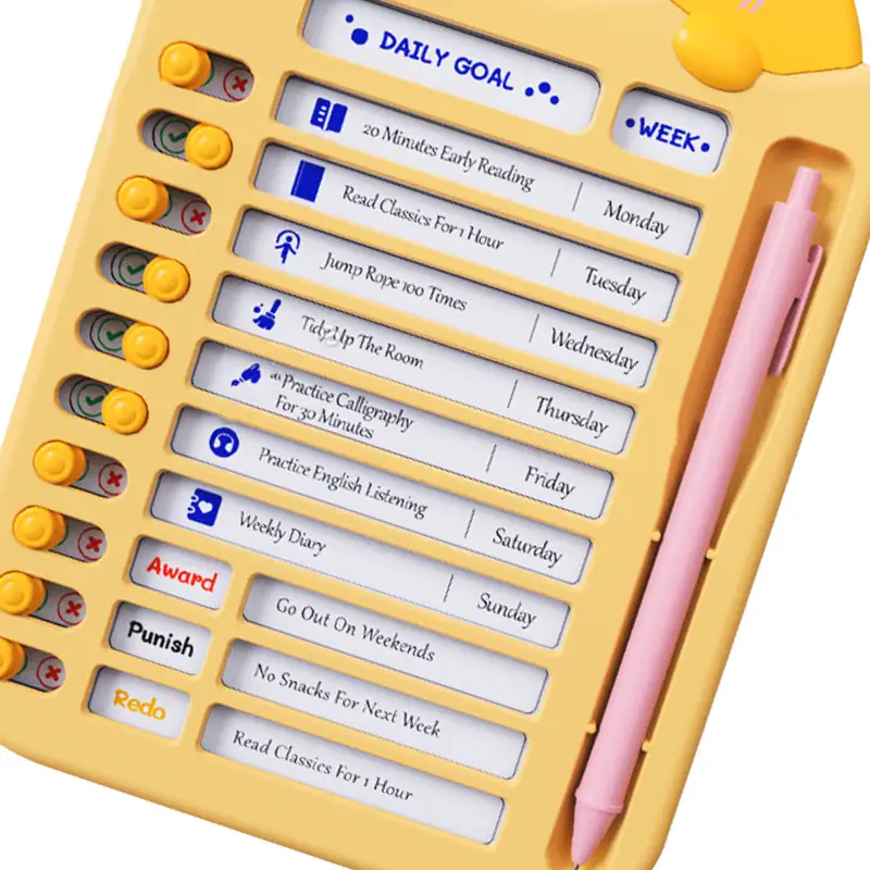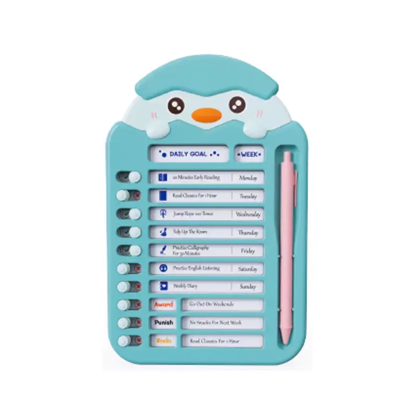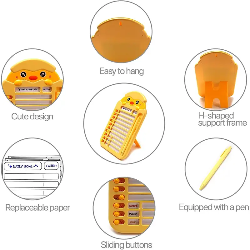 ببا پلنر برنامه روزانه طرح جوجه از این به بعد برنامه و اهدافت رو روی این تخته بنویس و بذار جلوی چشمت باشه! این تخته پلنر رنگی با رنگ های پاستلی جذاب خود کودکان و بزرگسالان رو مجذوب خود می کند. این پلنر دارای 14 کاغذ دو رو برای نوشتن یادداشت ها و برنامه های هفتگی. صفحه ی سفید آن ایده آل برای یادداشت های رومزه و یادآوری هاست و دارای دکمه هایی برای انجام شده و عدم انجام شدن آن است. یک محصول کاربردی برای کودکان بالای 3 سال و نوجوانان و بزرگسالان.