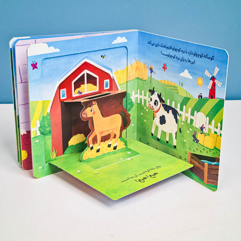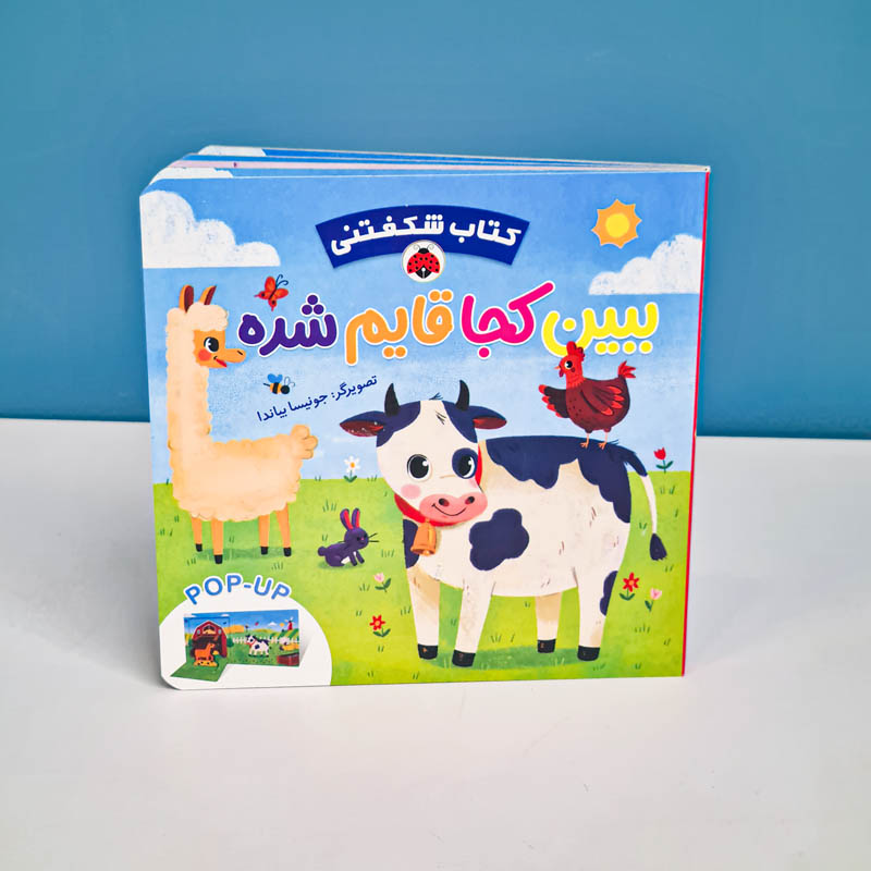 کتاب مقوایی و پاپآپ «ببین کجا قایم شده» از مجموعه جذاب کتابهای شکفتنی منتشر شده است. در هر صفحه این کتاب کودک با یک سورپرایز تازه روبهرو میشود. کافیست قسمت برجسته یا جداشونده تصویر را بلند کند تا در پشت آن حیوانات اهلی دوستداشتنی مثل اسب کوچولو، سگ کوچولو، شتر کوچولو و بره ظاهر شوند و دنیای شاد و هیجانانگیزی را برای او بسازند.