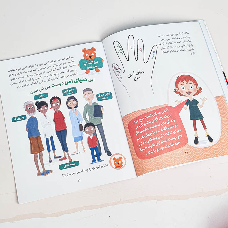 کتابی برای آموزش خودمراقبتی به کودکان، یادگیری احساسات، احساس امنیت، و عدم امنیت، انواع روابط و اصول مهارت جرئت ورزی.