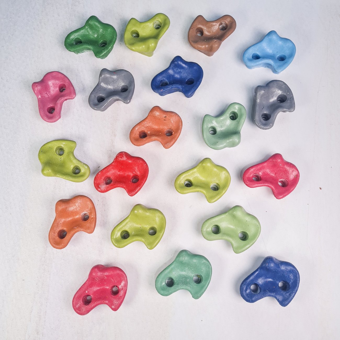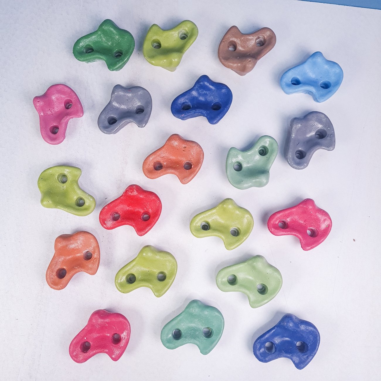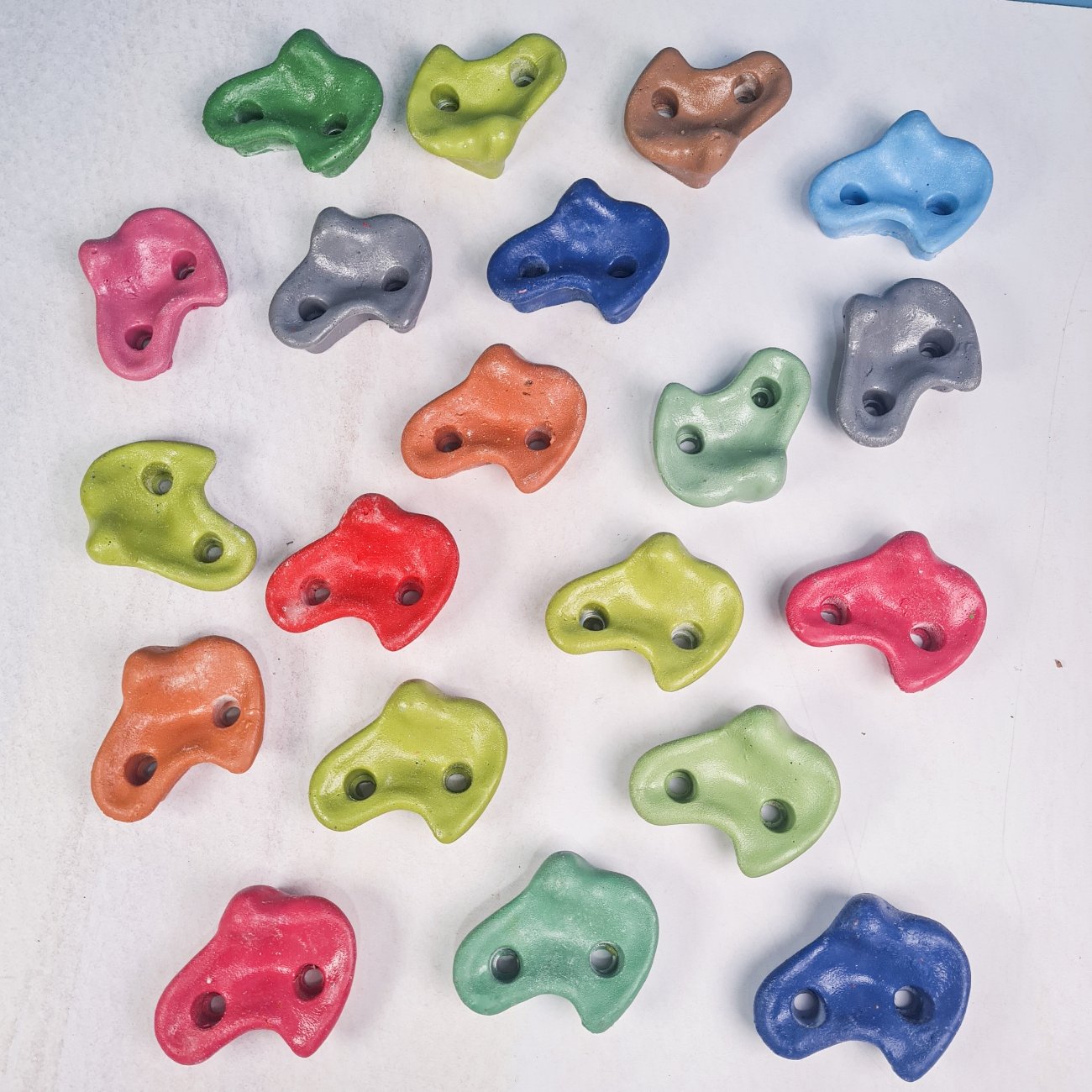 گیره صخره نوردی کودک محصولی است با کیفیت بالا که شما می توانید با نصب آن در فضای بازی کودک و نوجوان و افراد مبتدی و حتی حرفه ای یک دیوار صعود برای آنها ایجاد نمایید. این گیره ها را می توانید روی هر سطحی نصب نمایید. این گیره ها از جنس کامپوزیت (سنگ مصنوعی است) رنگ این گیره ها ثابت است و ضد آب و می توانید در فضای باز از آن استفاده کنید. این کالا در بسته 20 عددی با رنگ های متنوع و بدون پیچ نصب برای شما ارسال می شود شما می توانید از فروشگاه های پیچ و مهره فروشی مهره و پیچ آلن سایز 10طول 5سانت تهیه کنید و در جهات مختلف قابل نصب هستند و حالات مختلفی را ایجاد می کنند.