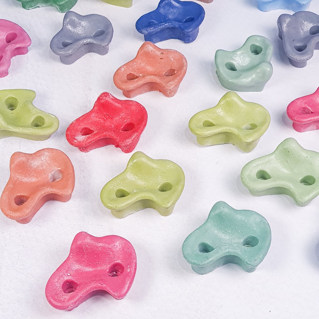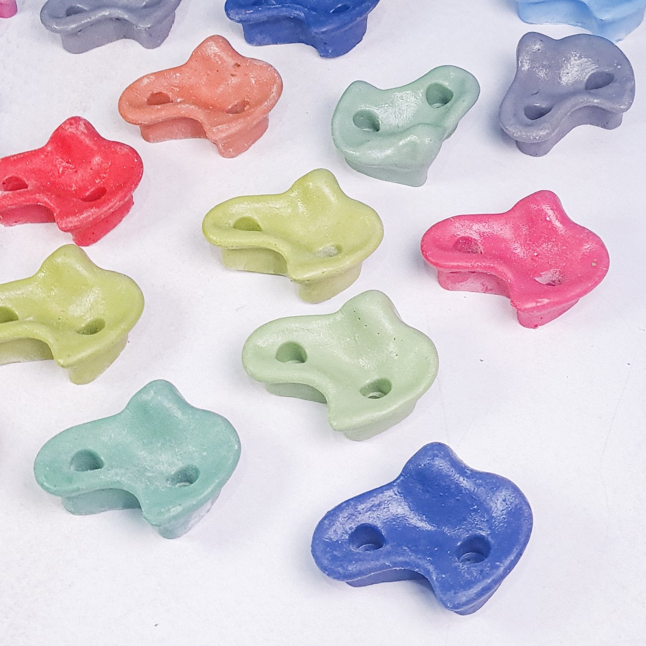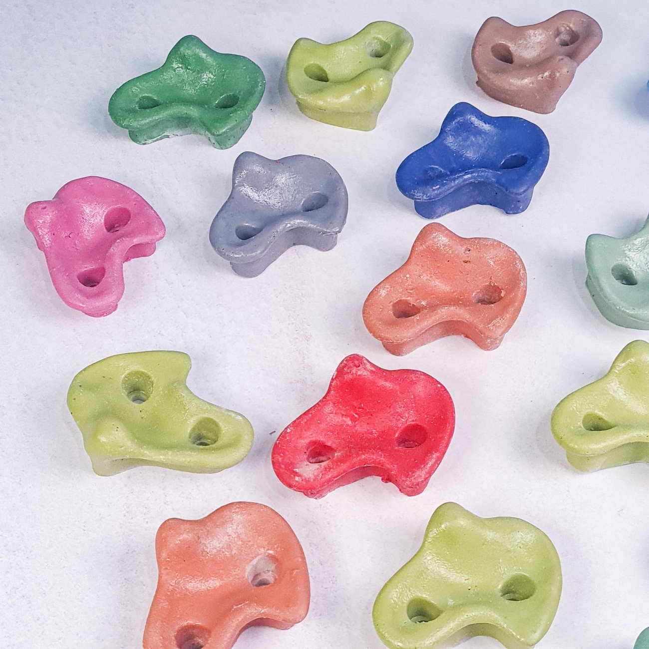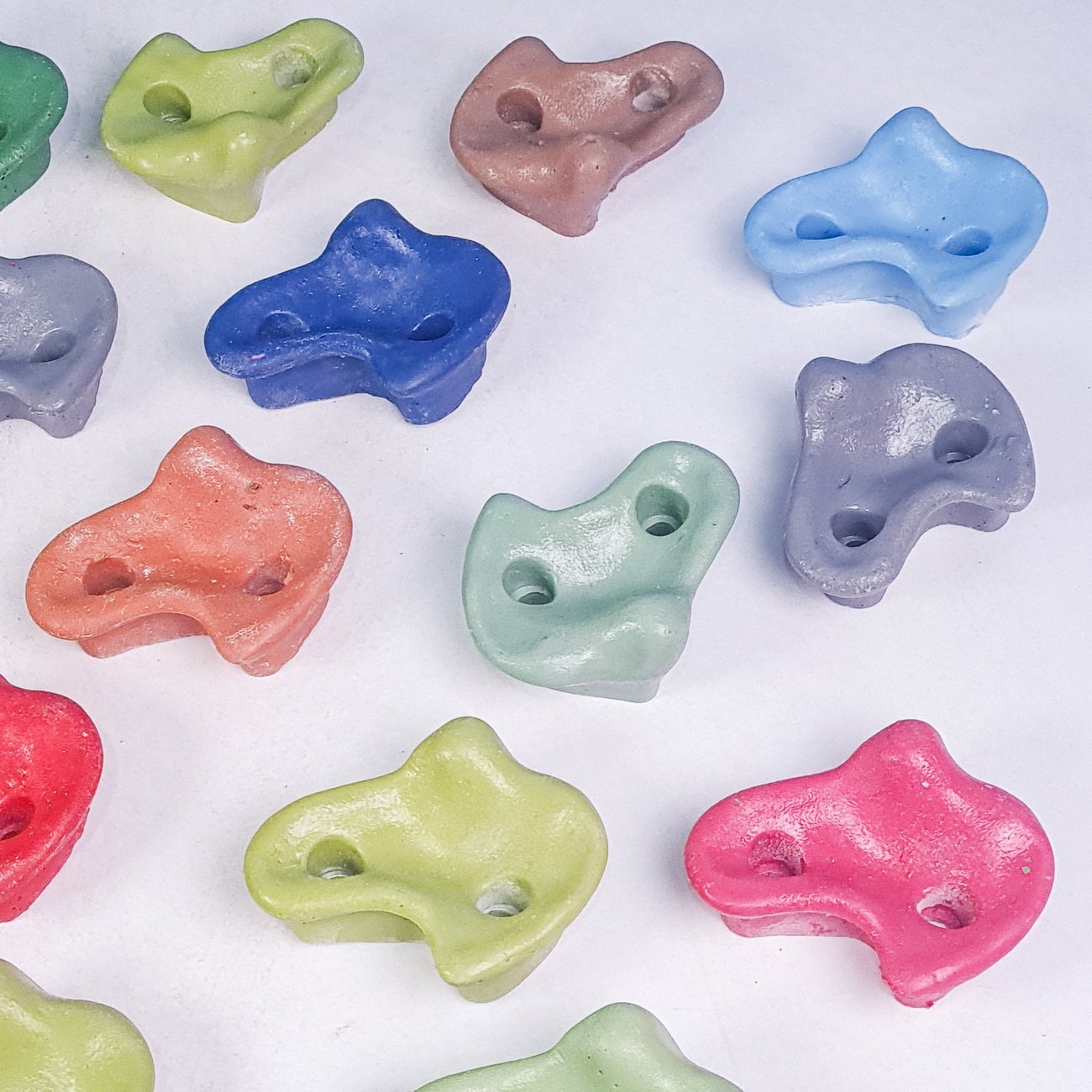 گیره صخره نوردی کودک محصولی است با کیفیت بالا که شما می توانید با نصب آن در فضای بازی کودک و نوجوان و افراد مبتدی و حتی حرفه ای یک دیوار صعود برای آنها ایجاد نمایید. این گیره ها را می توانید روی هر سطحی نصب نمایید. این گیره ها از جنس کامپوزیت (سنگ مصنوعی است) رنگ این گیره ها ثابت است و ضد آب و می توانید در فضای باز از آن استفاده کنید. این کالا در بسته 20 عددی با رنگ های متنوع و بدون پیچ نصب برای شما ارسال می شود شما می توانید از فروشگاه های پیچ و مهره فروشی مهره و پیچ آلن سایز 10طول 5سانت تهیه کنید و در جهات مختلف قابل نصب هستند و حالات مختلفی را ایجاد می کنند.