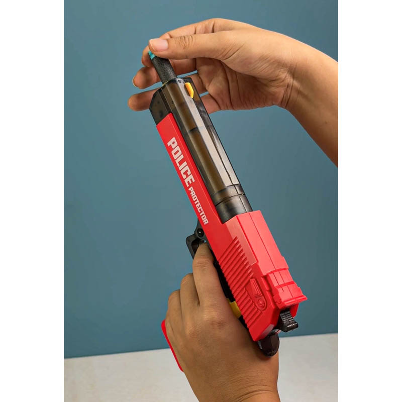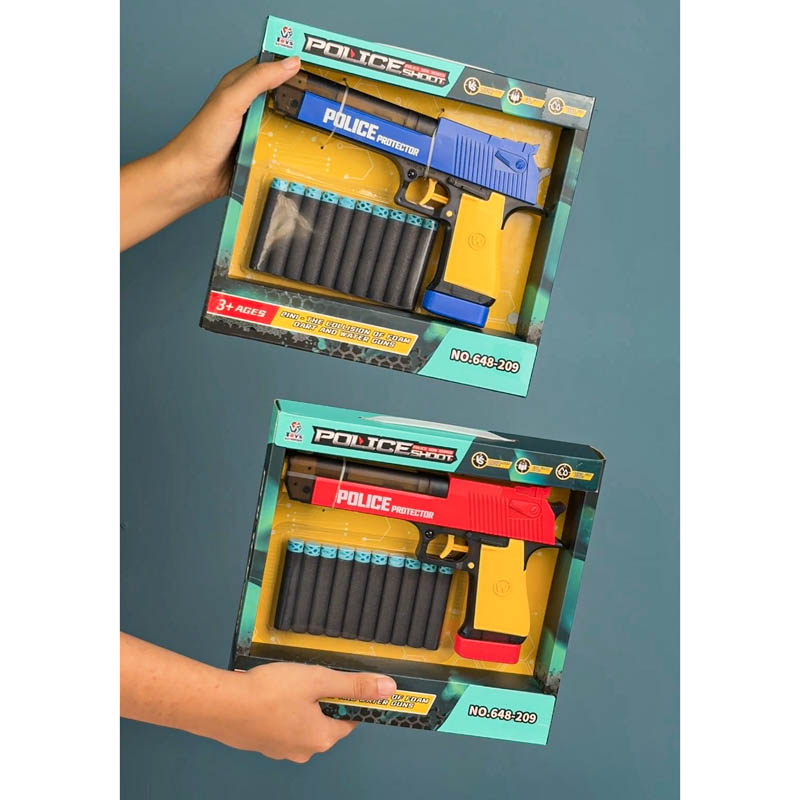 کودکان عاشق نقش بازی و سفر در دنیای تخیل هستند و با این تفنگ کودک جذاب این فرصت را به فرزاندان خود بدهید تا نهایت استفاده را از قدرت خلاقیت خود را ببرند. همچنین بازی با تفنگ اسباب بازی موجب افزایش خلاقیت و مهارت های ذهنی در بچه ها میشود. این این اسباب بازی دو کاره است (هم تفنگ آب پاش، هم تفنگ پرتاب تیر) که دارای 10 تیر کوچک فومی برای هدف گیری میباشد. تفنگ اسباب بازی کودک ساخته شده از پلاستیک با درجه کیفی بالا و فاقد مواد سمی است و برای نقش بازی کودکان بسیار ایده ال است.