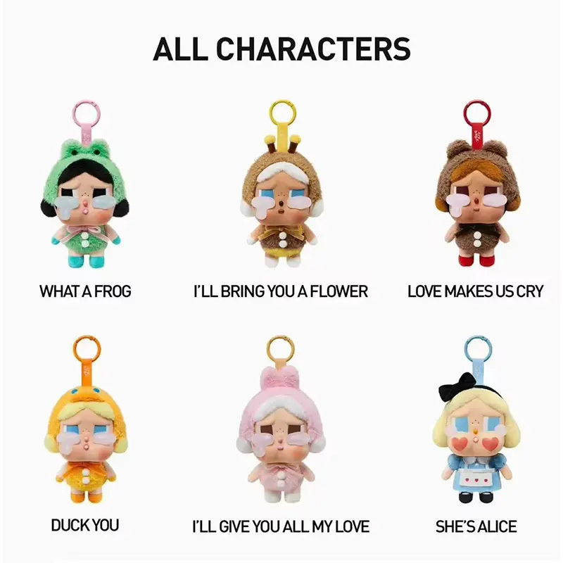 - LOVE MAKES US CRY (خرسی): این شخصیت با گوشهای پشمالو و چهرهای نمکین، نمادی از عشق و محبت است. اشکهای او نشاندهنده احساسات عمیقی است که از عشق سرچشمه میگیرد.