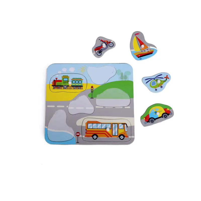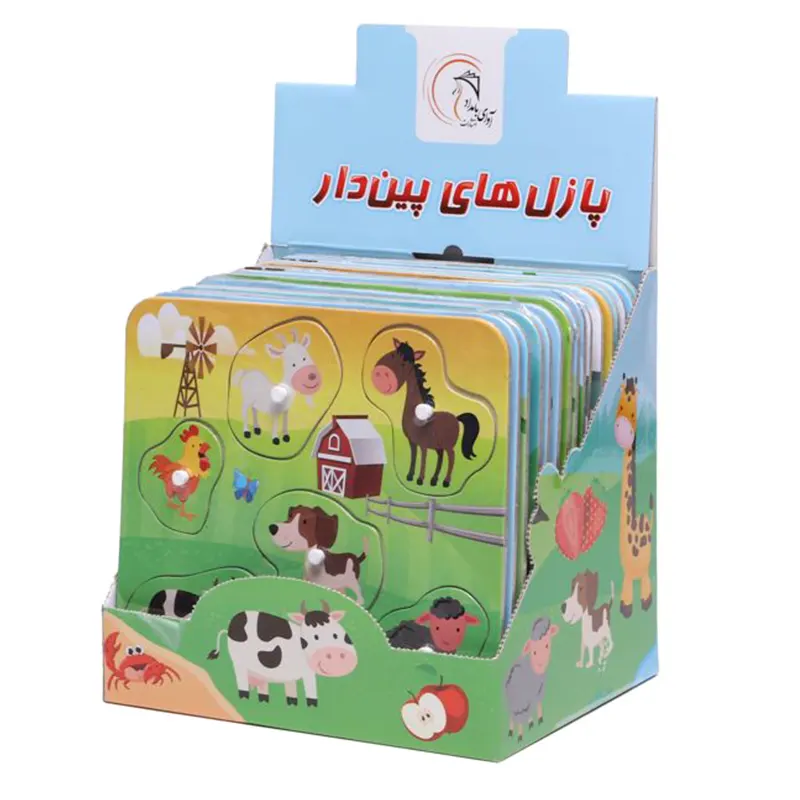 پازل جاگذاری پین دار در طرح های مختلف، یک اسباب بازی فکری محبوب و چالش برانگیز برای کودک است. پازل جاگذاری کودک فرصتی را فراهم میکند تا وی برای دستیابی به یک هدف تلاش کرده تا به سرانجام برسد. مناسب کودکان 2 سال به بالا.