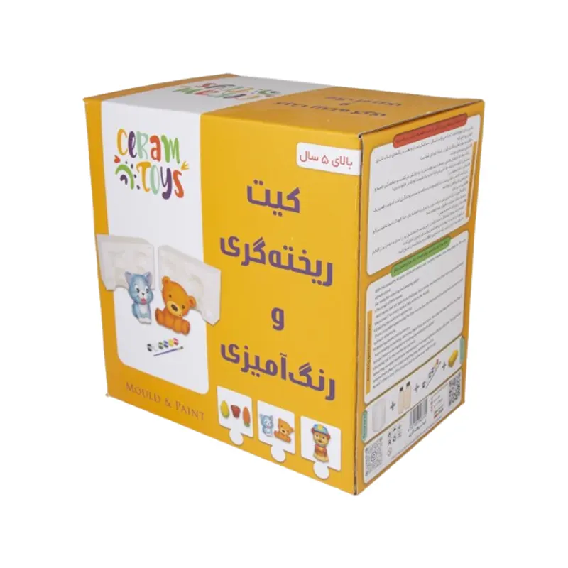 کیت ریخته گری و رنگ آمیزی دارای قالب مجسمه سازی، دوغاب، گواش 6 رنگ، سمباده نرم است.کیت ریخته گری و رنگ آمیزی برای گروه سنی بالای 5 سال مناسب است.
