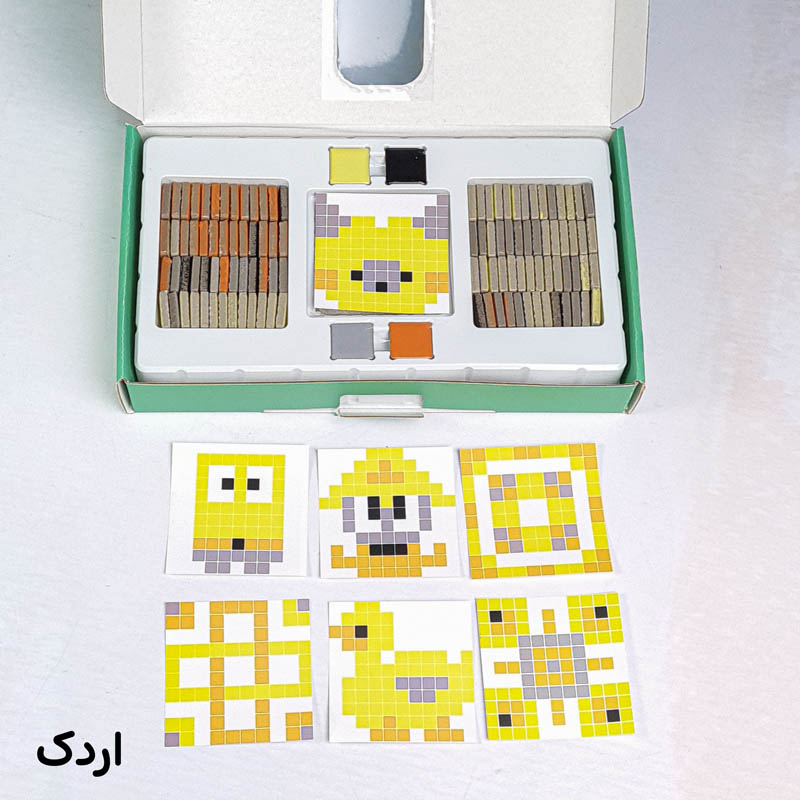 ایده بگیر، بساز، تغییر بده و دوباره خلق کن! با پیکسل آرت میتونی مثل یه هنرمند حرفهای طرحهای فوقالعاده بسازی؛ قطعات رنگی سرامیکی رو کنار هم بذار، الگوها رو دنبال کن یا خلاقیتت رو آزاد کن! اقلام درون بسته بندی 7 عدد ورق بازی، 124 عدد قطعه سرامیکی. پیکسل آرت فقط یک بازی نیست، یک ابزار برای یادگیری و پرورش خلاقیت است!