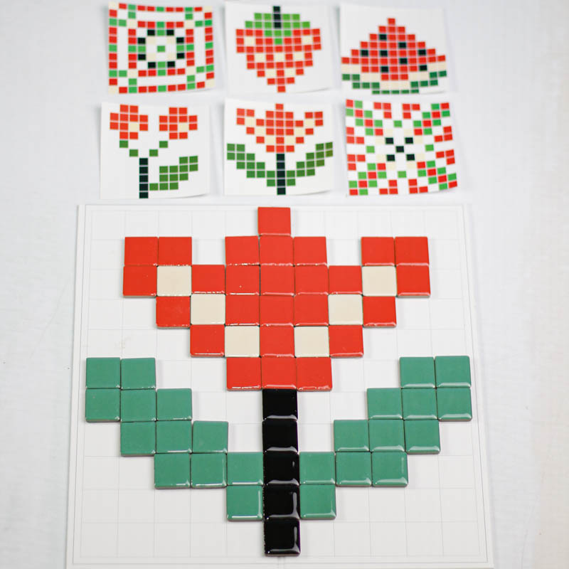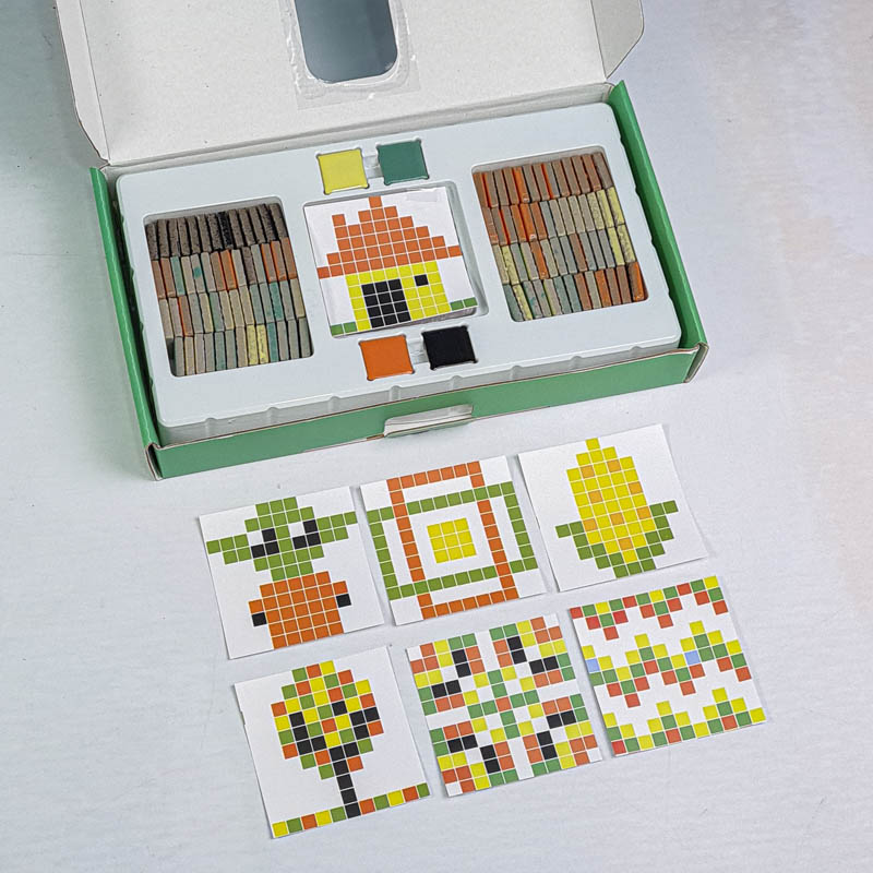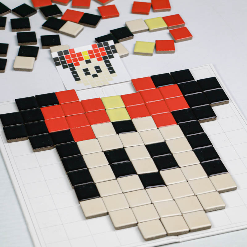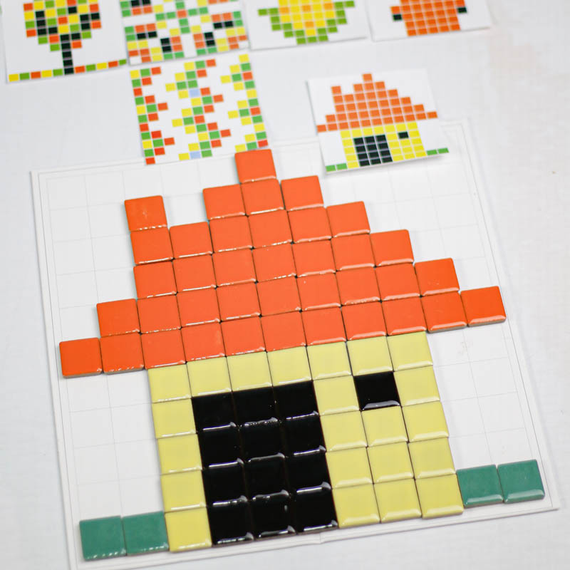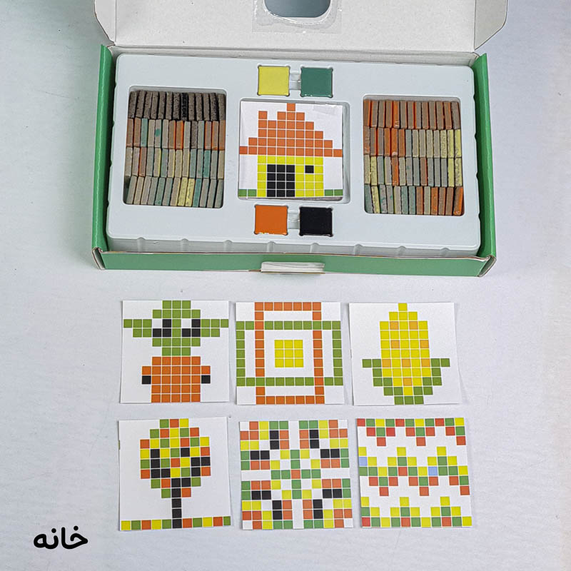 اسباب بازی مونته سوری تطبیق پیکسل آرت یک بازی آموزشی و سرگرم کننده برای کودکان 3 سال به بالا و پیش دبستانی است که با کمک آن کودک میتواند بر اساس کارت ها سازه های سرامیکی جذاب و زیبا سازند. اسباب بازی مونته سوری شامل 7 عدد ورق بازی، 124 عدد قطعه سرامیکی است که میتوان یا به صورت گروهی و بازی مسابقه ای انجام داد و هم به صورت تکی. به این شکل که یک کارت را وسط گذاشته و هر بازیکنی که سریعتر سازه را بسازد برنده بازی است. ویا میتوان به صورت تکی و آموزشی با کودک رنگ، اشکال، ترتیب و... را آموزش داد.