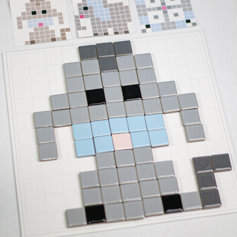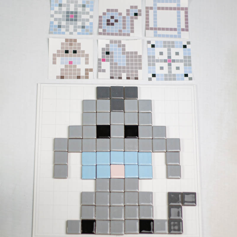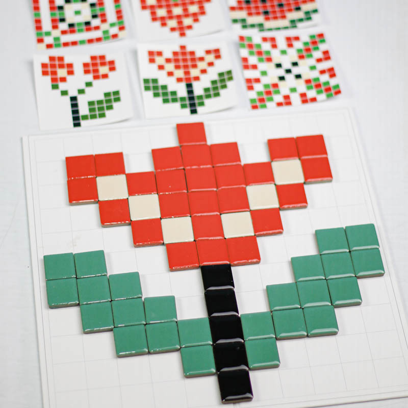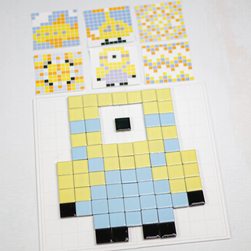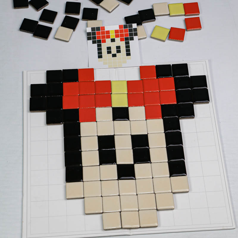 اسباب بازی مونته سوری تطبیق پیکسل آرت یک بازی آموزشی و سرگرم کننده برای کودکان 3 سال به بالا و پیش دبستانی است که با کمک آن کودک میتواند بر اساس کارت ها سازه های سرامیکی جذاب و زیبا سازند. اسباب بازی مونته سوری شامل 7 عدد ورق بازی، 124 عدد قطعه سرامیکی است که میتوان یا به صورت گروهی و بازی مسابقه ای انجام داد و هم به صورت تکی. به این شکل که یک کارت را وسط گذاشته و هر بازیکنی که سریعتر سازه را بسازد برنده بازی است. ویا میتوان به صورت تکی و آموزشی با کودک رنگ، اشکال، ترتیب و... را آموزش داد.