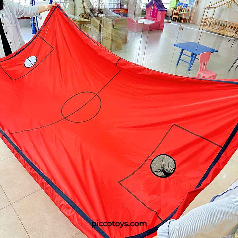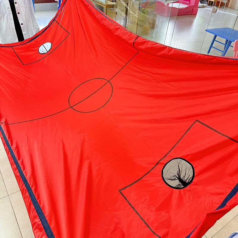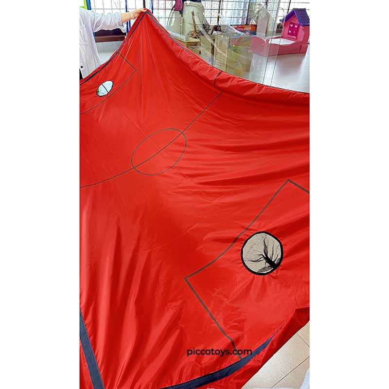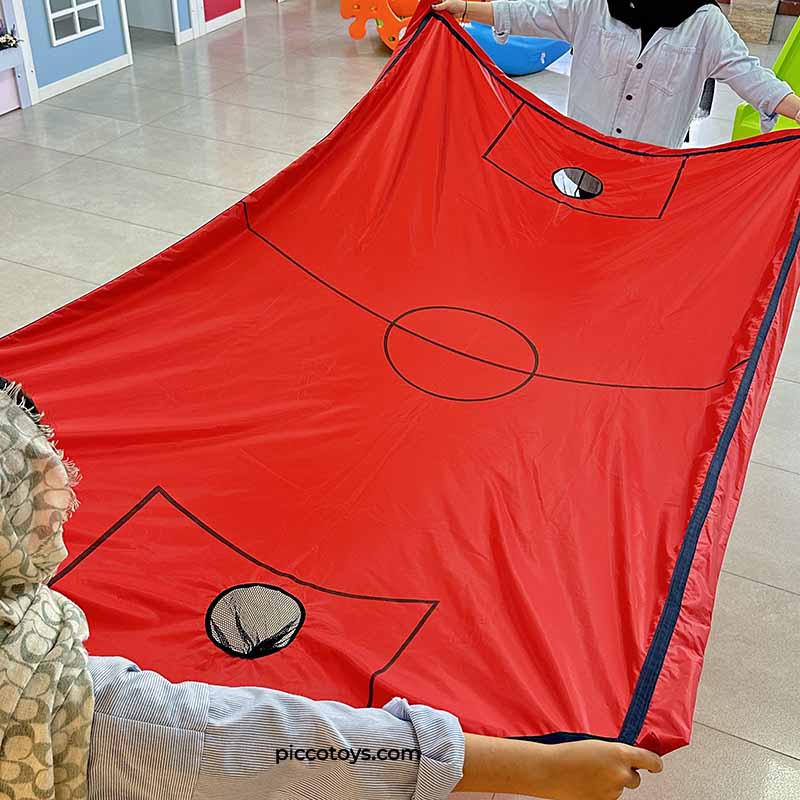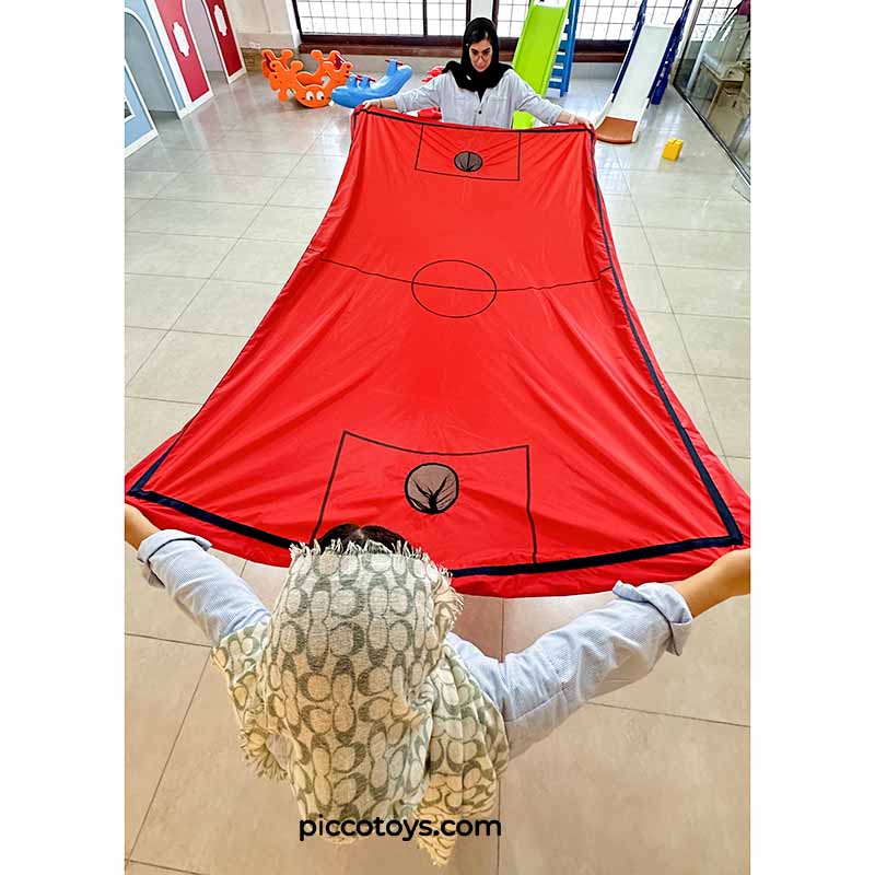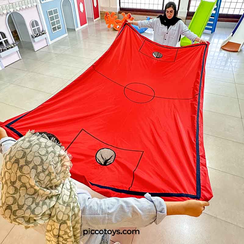 فوتبال هوایی کودک یک زمین مستطیل شکل از جنس پارچه چتری با کیفیت است که در دو طرف آن دو سوراخ توری قرار دارد. کودکان با گرفتن اطراف زمین تلاش میکنند توپ را به داخل سوراخ سمت مقابل هدایت کنند. این طراحی منحصربهفرد باعث میشود کودکان نه تنها از یک بازی هیجانانگیز لذت ببرند بلکه مهارتهای جسمی و ذهنی خود را نیز تقویت کنند. فوتبال هوایی از پارچه با کیفیت بالا تولید شده است که علاوه بر سبکی، دوام بالایی نیز دارد. این ویژگی باعث میشود که بازی به راحتی حمل و نگهداری شود. فوتبال هوایی کودک در رنگبندی جذاب و شاد طراحی شده است که به تحریک حس بصری کودکان کمک میکند و آنها را به بازی بیشتر ترغیب میکند. زمین بازی فوتبال هوایی کودک به گونهای طراحی شده که برای استفاده در خانه، مدارس و مراکز آموزشی، مهد کودک، خانه بازی، فضای تخصصی کودکان، مراکز توانبخشی و .... میتواند قابل استفاده باشد