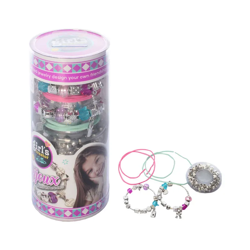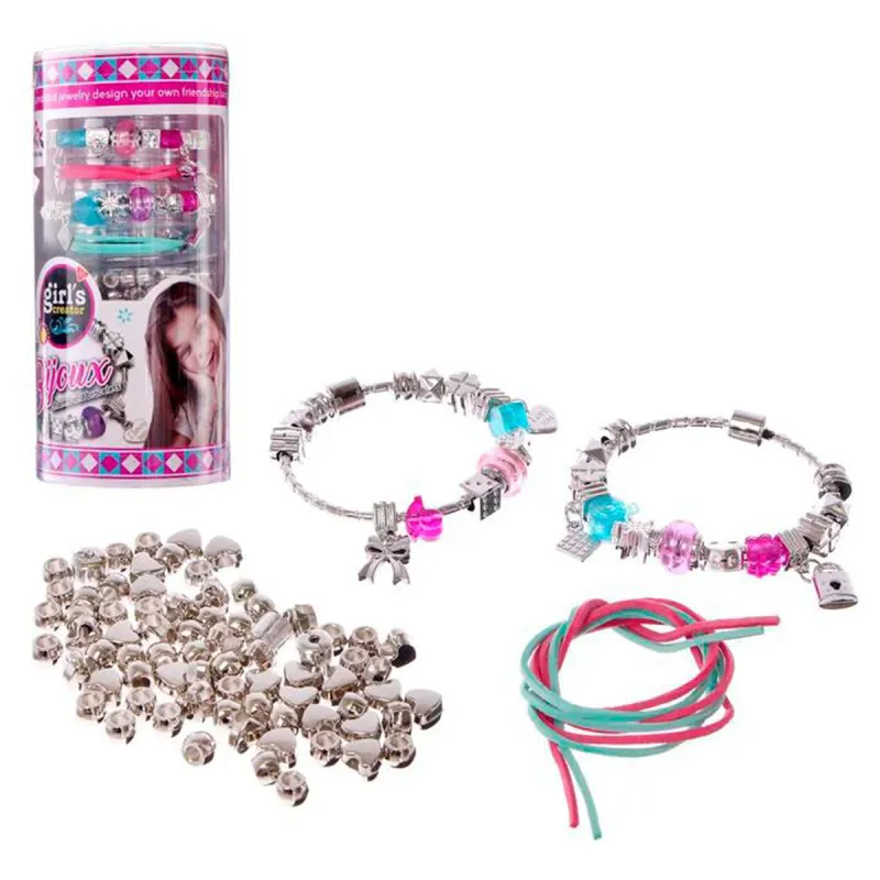 با کمک این ست زیبا با سلیقه خودت دستبند دوستی برای خودت و دوست صمیمیت درست کن. اسباب بازی ساختنی دستبند، هدیه ای زیبا، رنگارنگ و هیجان انگیزی برای کودکان بالای 3 سال است. این ست شامل نخ، مهره های پلاستیکی به شکل های جذاب دخترانه میباشد.
