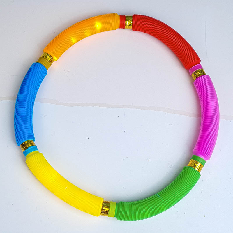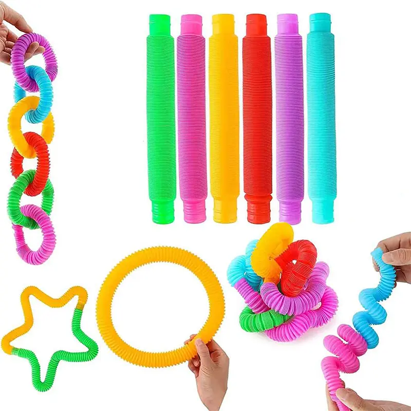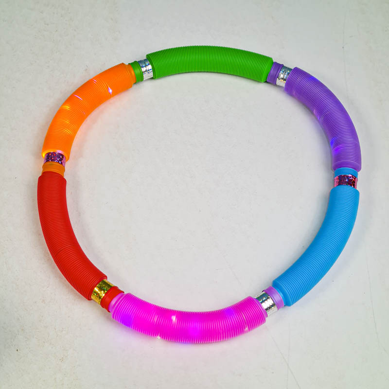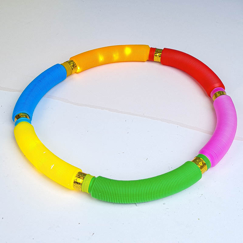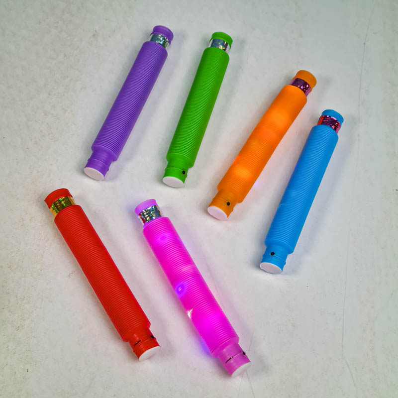 لوله های فنری حسی چراغدار یک وسیله کاهنده استرس است. لوله های حسی یک بازی پایان باز نام گذاری شده است زیرا بی نهایت بازی میتوان با استفاده از خلاقیت طراحی و اجرا کرد. اولین و ابتدایی ترین کاربرد این وسیله تقویت عضلات و حس شنوایی کودک میباشد و بعد از آن میتوان با اتصال این لوله های رنگی فنری بازی های مختلفی طراحی کرد. این محصول در حالت بسته 18.5 سانت طول و در حالت باز شده 62 سانت میباشد