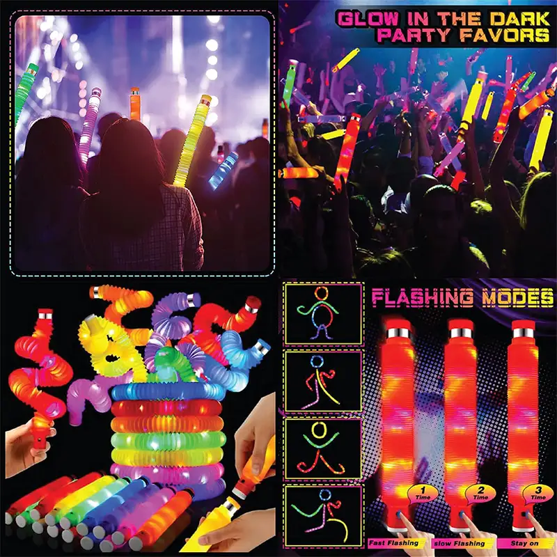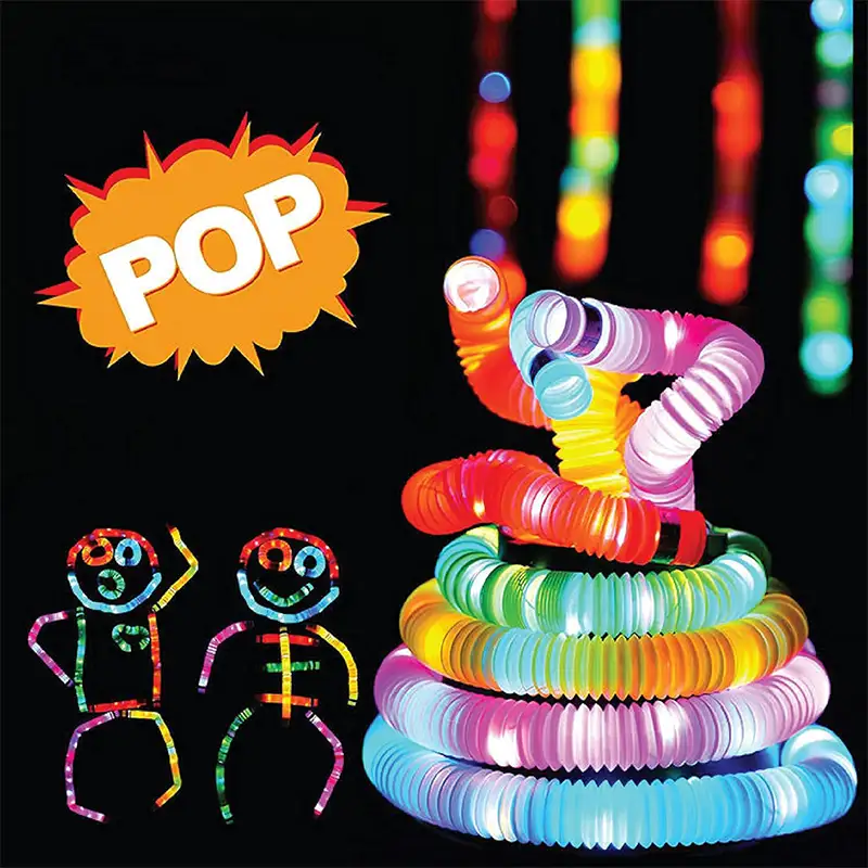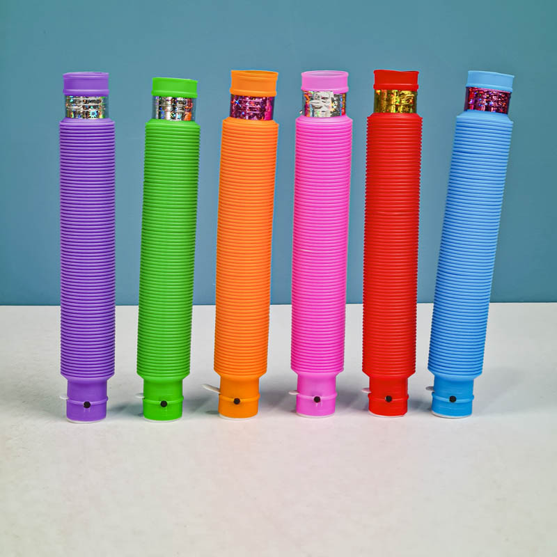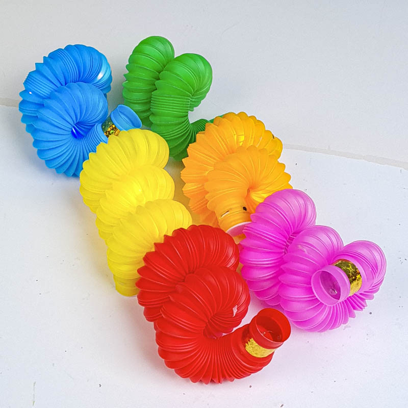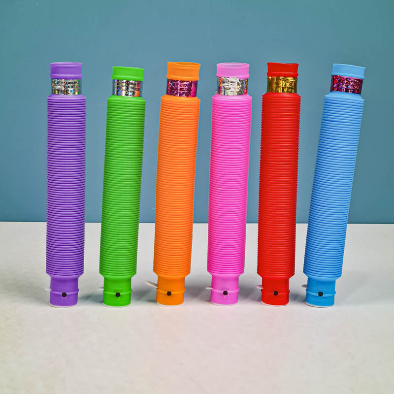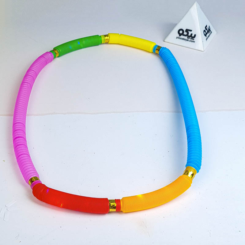 فیجت ضد استرس یا لوله فنری کشی چراغ دار و صدادار یکی از ترندترین فیجت های روز دنیا می باشد که بسیار سرگرم کننده و کاربردی می باشد که با کشیدن و بسته شدن صداهای با مزه ای تولید می کند این اسباب بازی علاوه بر صدا داری نور و چراغ نیز می باشد که برای کودکان و نوزادان بسیار سرگرم کننده است. این اسباب بازی در کنار صدای جذابی که دارد می تواند حس لامسه، شنوایی و مهارتهای حرکتی کودک شما رو تقویت کند. با این لوله حسی می تونید هر فیگوری که دلتون می خواد بسازید، حالت های مختلف و بامزه و صدای دلنشین آن لبخند به صورت هر کوچولویی میاره!