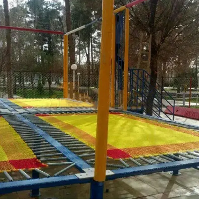 استفاده از ترامپولین تخته ای استاندارد پارکی سه تخته در پارک ها و یا شهرهای بازی برای فضای باز بدون سقف دارای استاندارد های بین المللی، تور محافظ ، کفی پلی پرویپلن ضد فرسایش و ضد لغزش و... است.