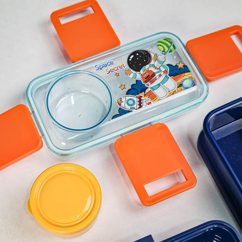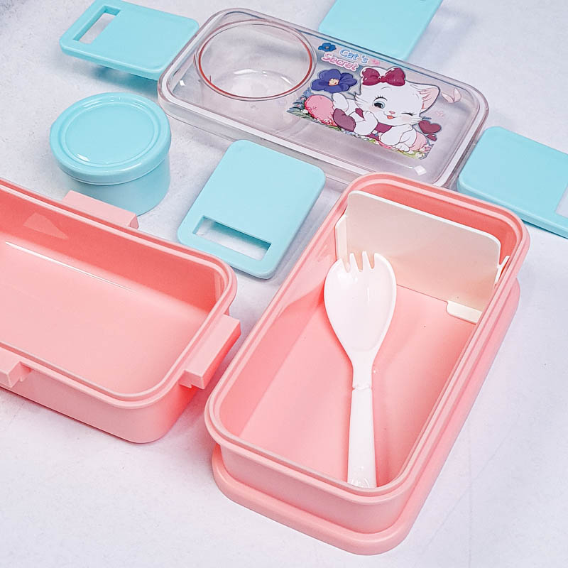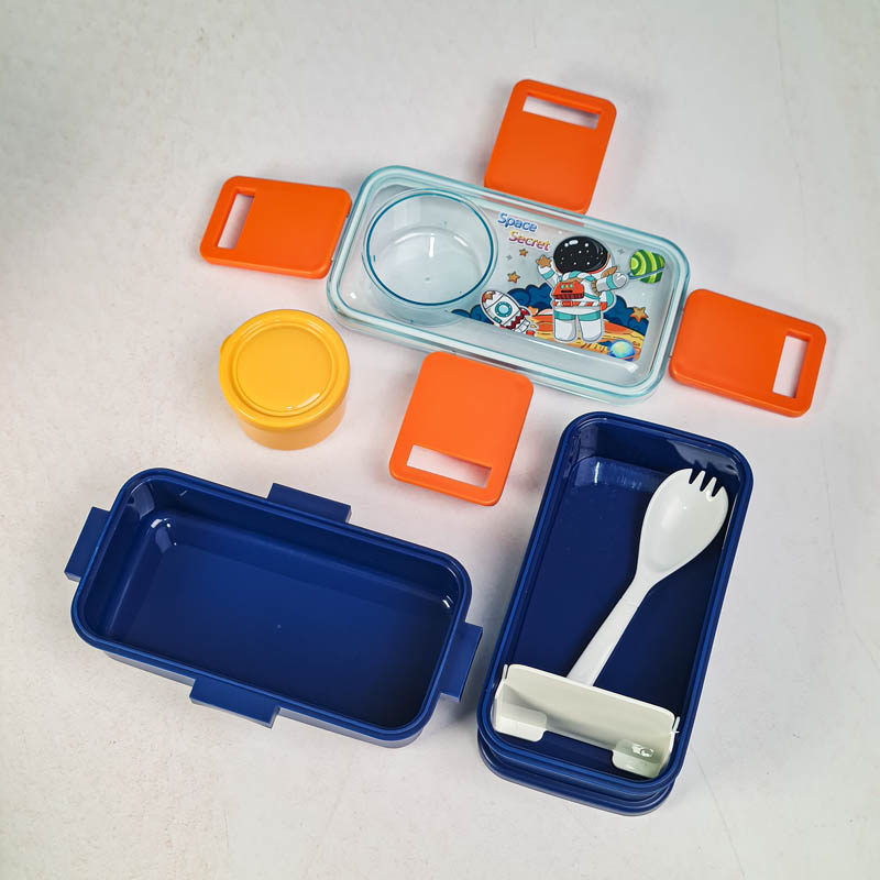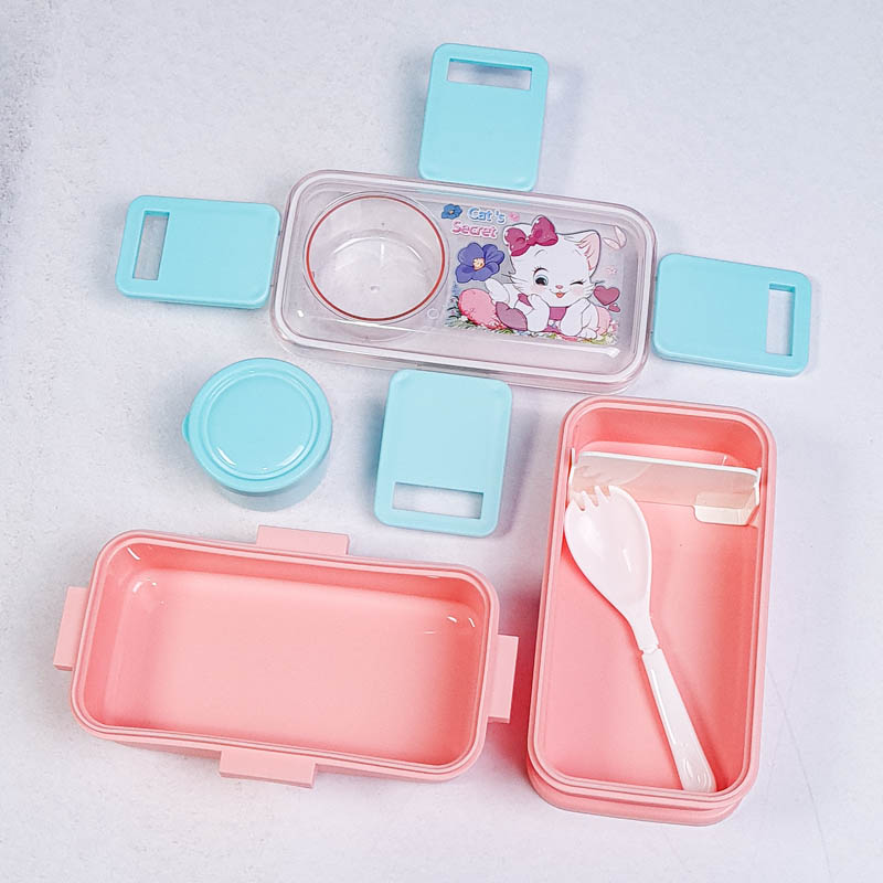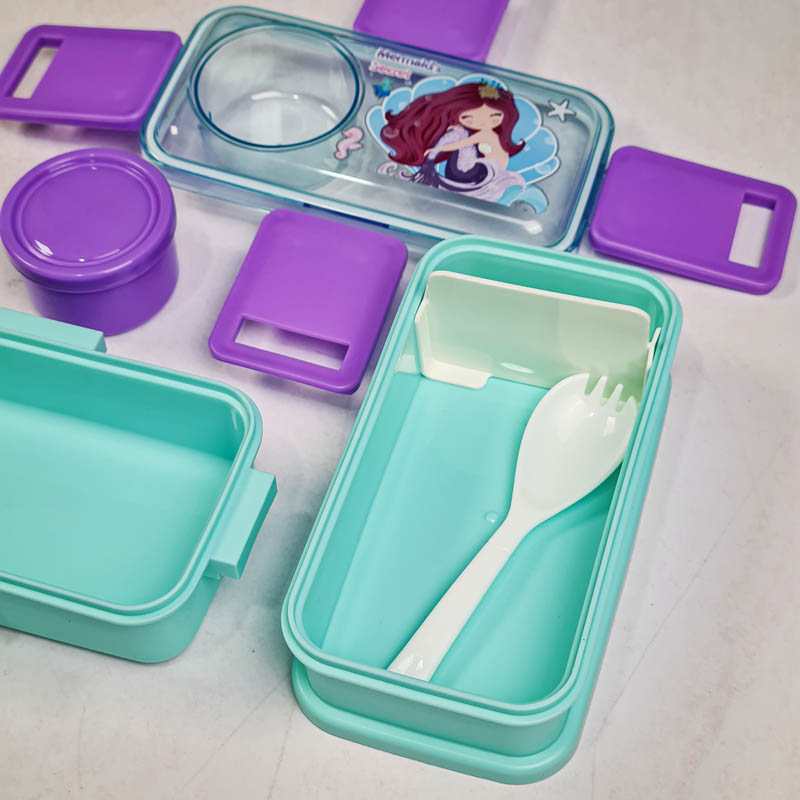 ظرف غذا کودک یا لانچ باکس کودک Lunch Kit یک ست غذا خوری برای نگهداری و جداسازی غذاهای مختلف می باشد. این لانچ باکس دارای دو طبقه جادار برای نگهداری خوراکی های می باشد. کوچولوها با این ظرف غذای کودک می توانند با آداب غذا خوردن آشنا شوند و تشویق به خوردن خوراکی هایشان در مدرسه می شوند. این ظرف غذای کودک دارای یک جدا کننده، یک قاشق و یک جای سس در قسمت بیرونی می باشد.